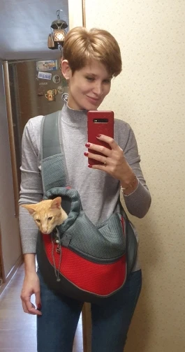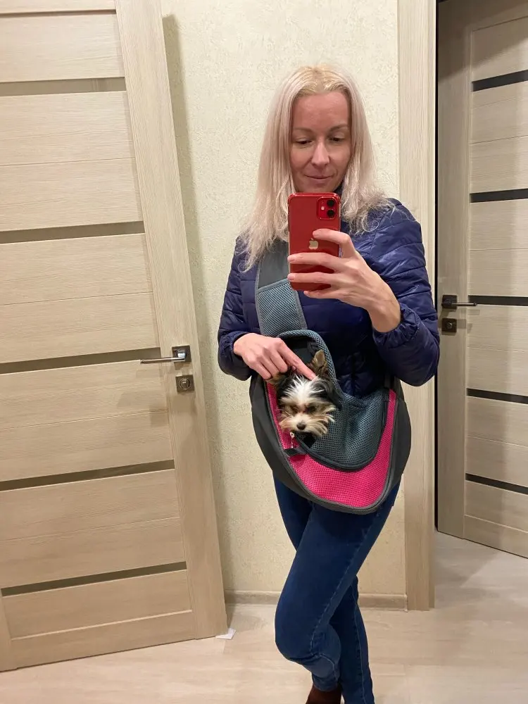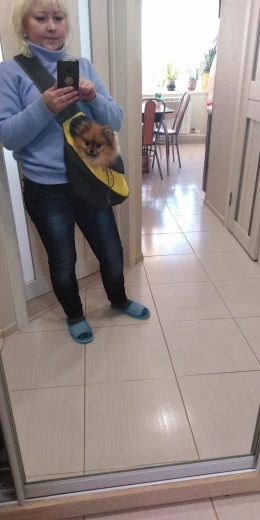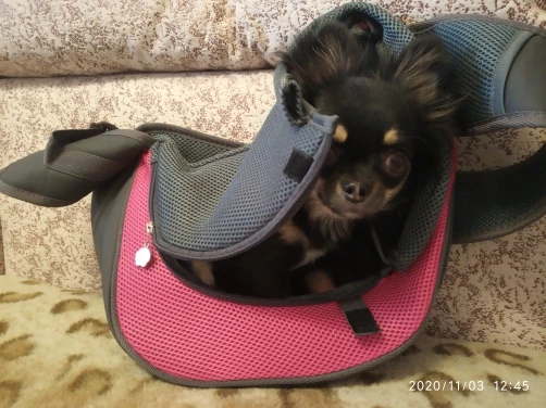 Крутая сумка, рекомендую :) маленькая собака 3,5 кг и сумка L идеально. Удобство, не в шее! Супер! Спасибо продавцам :)