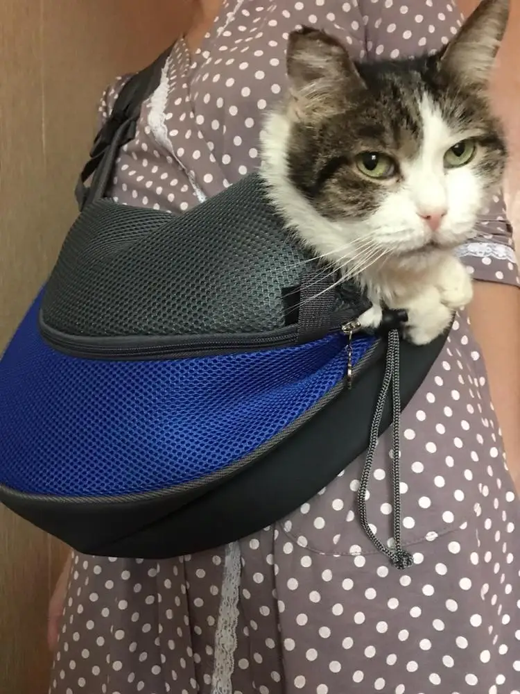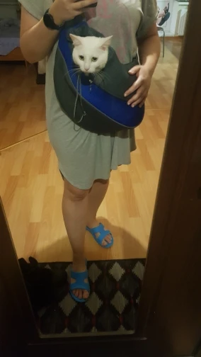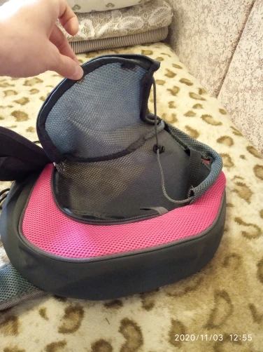 Очень классная сумка! Брала больший размер - для котика весом чуть больше 4 кг, подошло отлично! Меньший размер подойдёт только для котёнка или совсем маленькой собачки. Дно прорезиненное, плотное - будет удобно лапкам, и можно внутрь положить маленькое одеяльце. Верхняя часть сумки из дышащего материала. Застёжка на ремне, регулируется - можно сделать повыше и пониже, на фото максимально низкое положение. Ремень широкий и удобный, эргономичный. Сумка мягкая, питомца можно прятать под одежду - под куртку или шубу, к телу, когда прохладно, но и при этом дно сумки достаточно хорошо держит форму, и животному удобно сидеть или лежать. А летом, в сумке не будет жарко. Окошечко для головы регулируется шнурочком, и есть изнутри небольшой поводочек с карабином, который можно пристегнуть к ошейнику. Кот у нас путешественник, и сумку очень оценил, она ему понравилась, смирно в ней улёгся)) Очень, очень довольны оба покупкой, рекомендую! В Москву шло около 2 недель, быстро. Огромное спасибо!