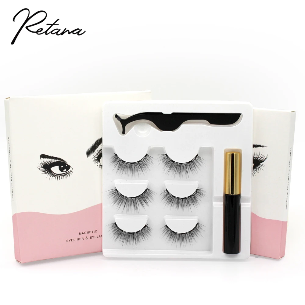3D Магнитные натуральные накладные ресницы ручной работы и магнитная подводка для глаз Водонепроницаемый Профессиональный набор инструментов для макияжа