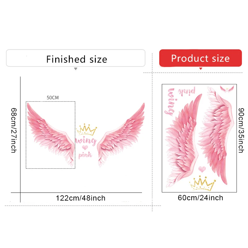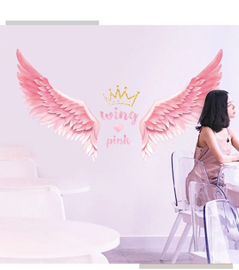 Настенные наклейки в скандинавском стиле с розовыми крыльями и короной для девочек, комнаты, спальни, экологически чистые настенные наклейки, съемная виниловая настенная роспись, домашний декор
