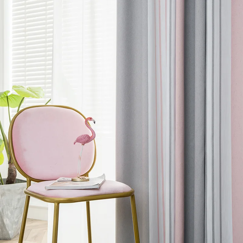 products nameNordic Gray-pink Collision Striped Jacquard Shading Curtains for Livin