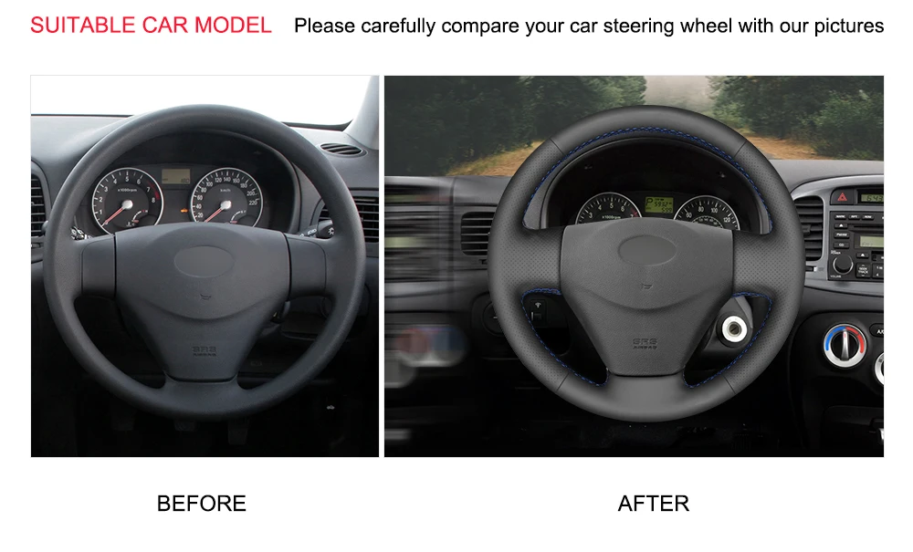 Рука сшитый черный искусственная кожа PU чехол рулевого колеса автомобиля для Kia Rio Rio5 Hyundai Getz Accent 2006 2007 2008 2009-2010
