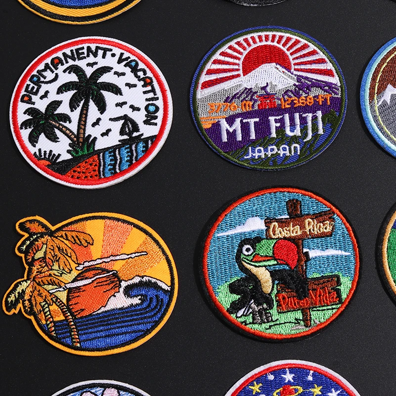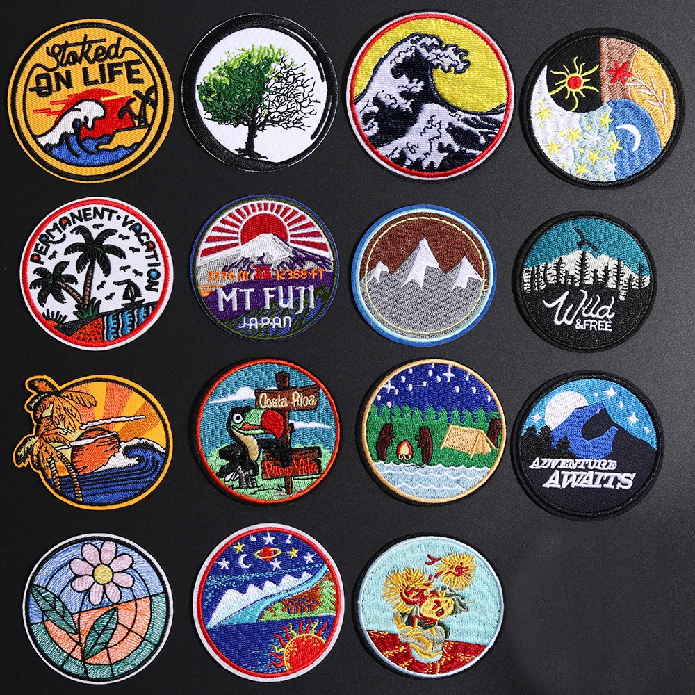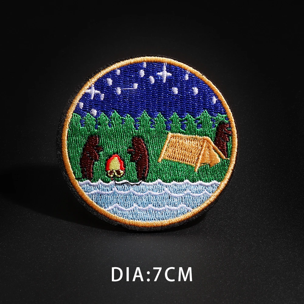 Круглая картина маслом из тонкой хризантемы, медведь для кемпинга, аппликация для вышивки железом на креплении, японские нашивки Fuji, сделай сам с ночным видением