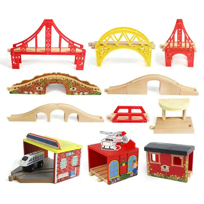 Деревянный поезд трек набор совместимое кольцо трек круговой орбита собрать аксессуары Магнитный маленький поезд головоломки игрушки для детей