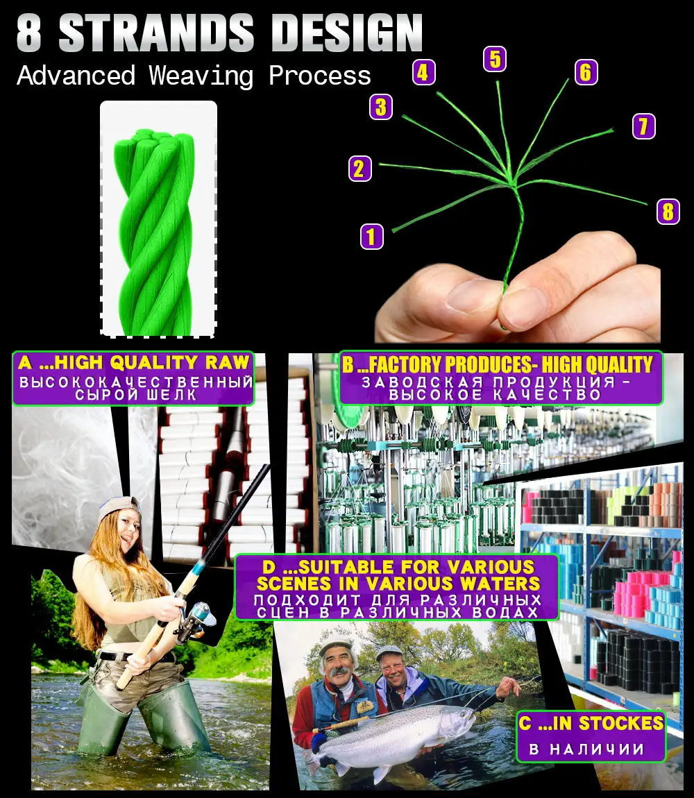BAKAWA 8 Strands 1000M 500M 300M Braided Fishing Line Multifilament Pesca Carp Super Strong Weave Sea Saltwater Extreme 100% PE