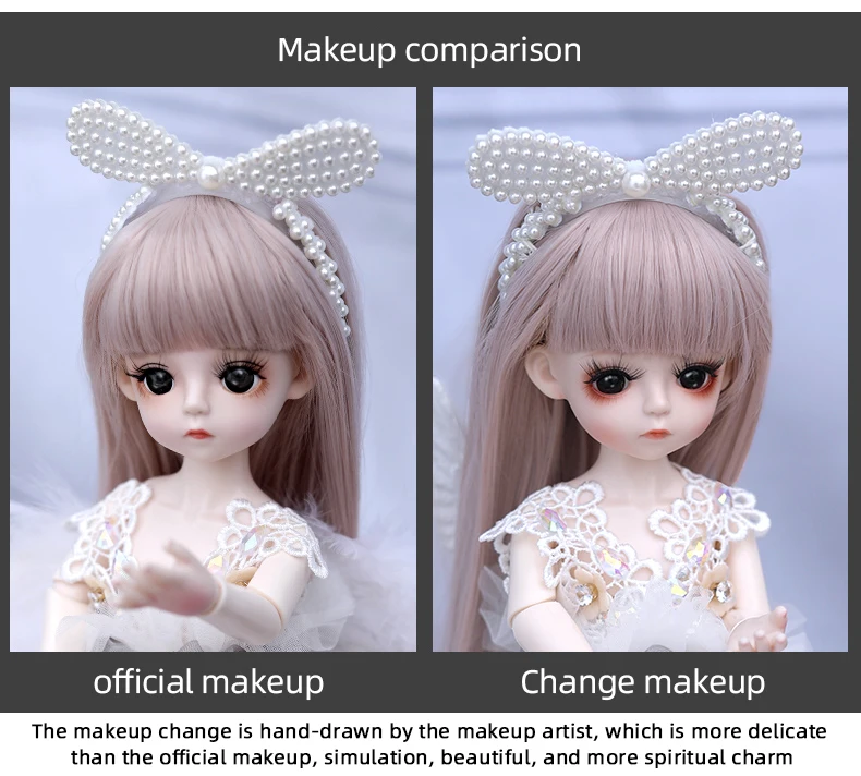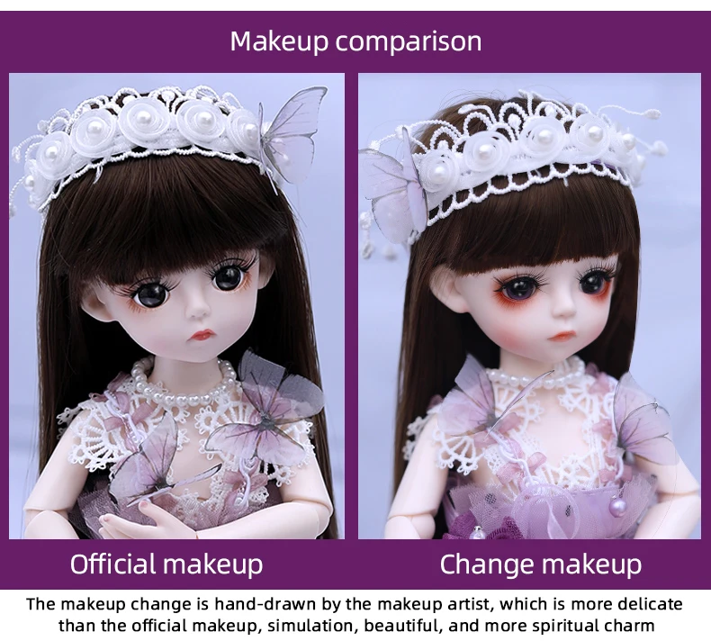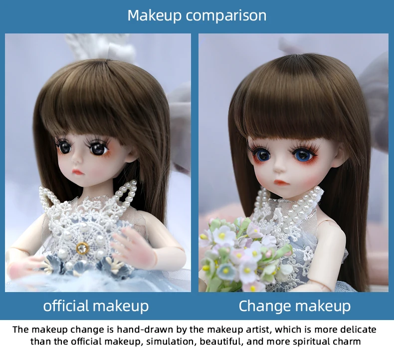 Хотя кукла 30 см маленькая, она сделана изысканно. Шарниры куклы очень гибкие, могут создавать много поз, и макияж также очень красивый. Полные отметки