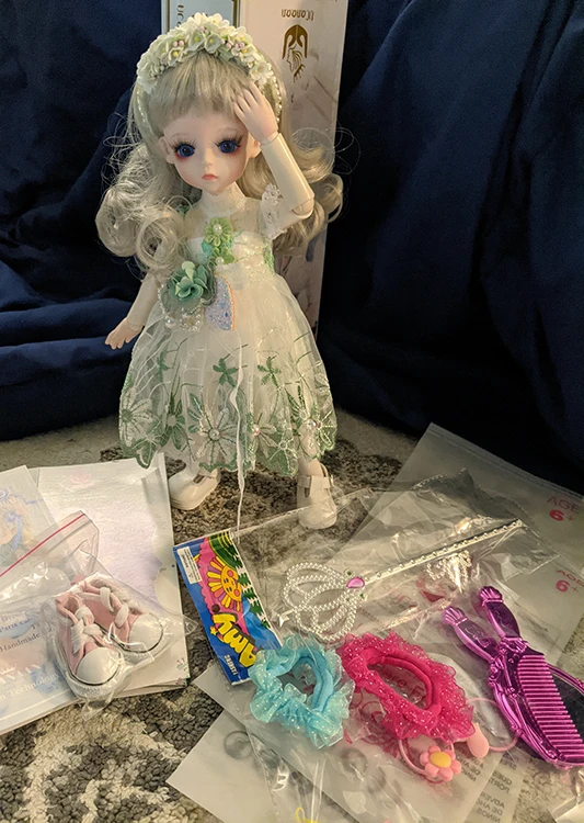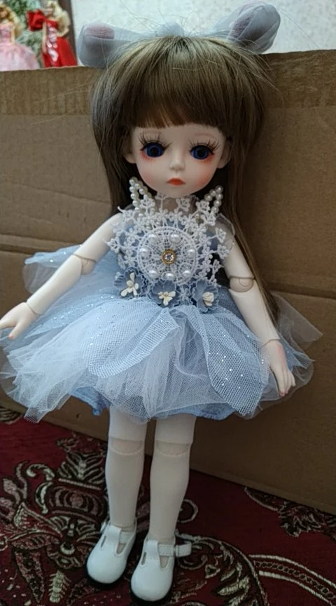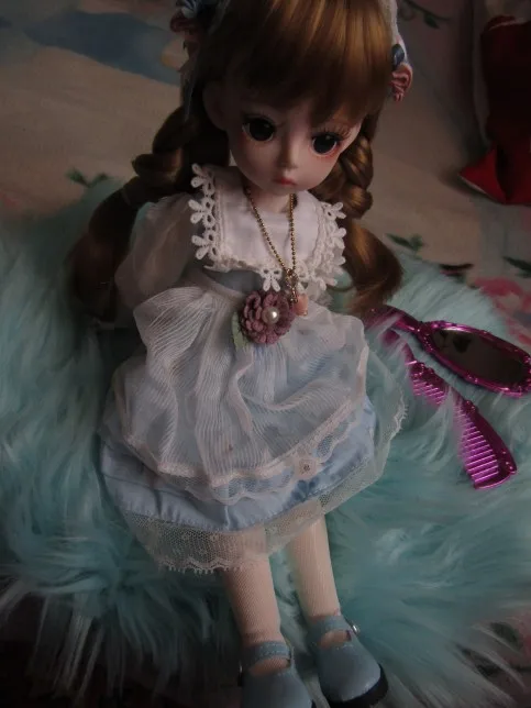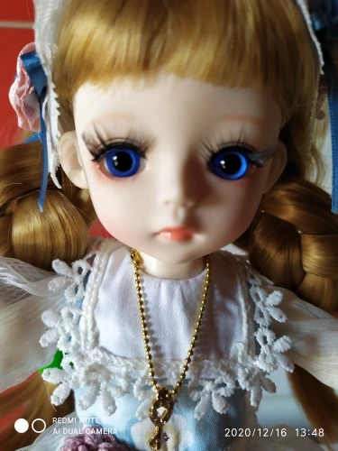 Очень красивая кукла, красивее в реальной жизни, чем на фотографиях. Пришел быстро и продавец очень внимателен к запросам. Только небольшой отрицательный момент жаль, что голова не может быть сочленена снизу сверху. Суставы не такие съемные для bjd, но по цене это уже удовлетворительно :) парики и одежда хорошего качества и очень мягкие парики. Мне уже понравилось менять глаза.