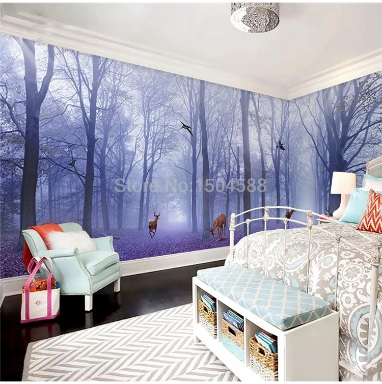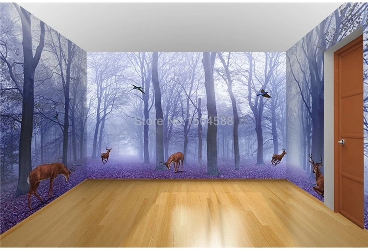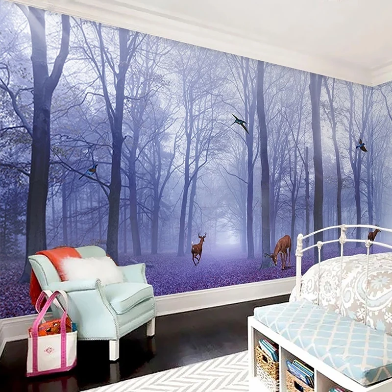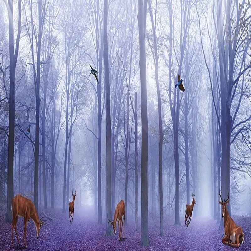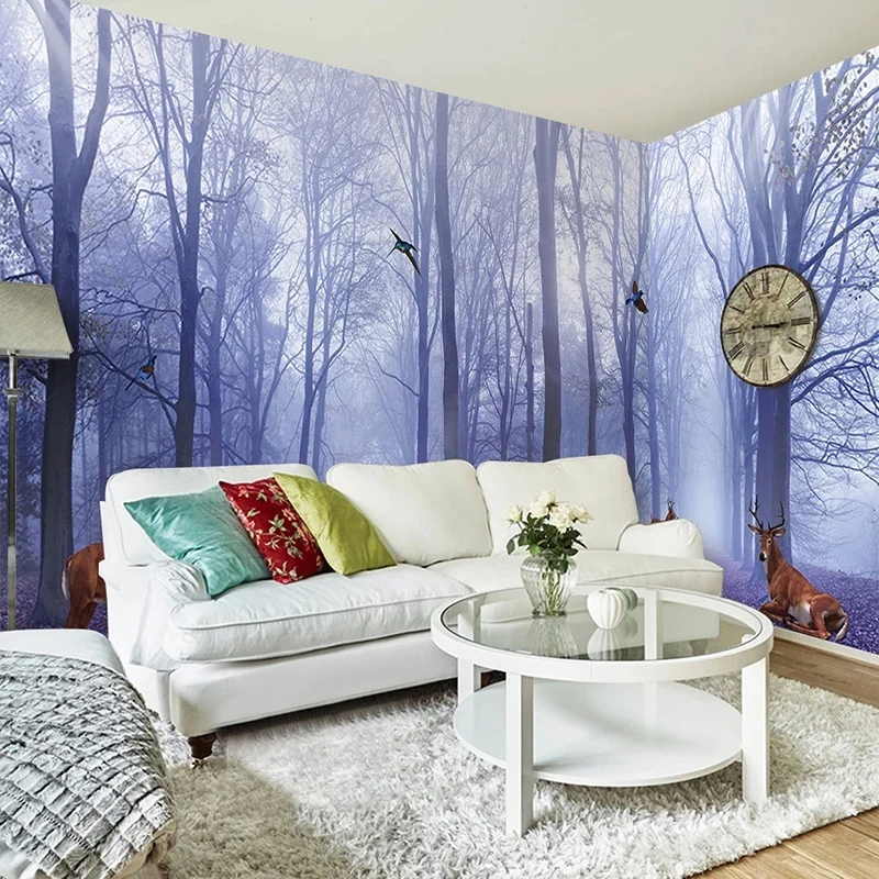 Большие Настенные обои на заказ, 3D с фиолетовым лесом обои с изображением лося, пейзажа, гостиной, ТВ, дивана, спальни
