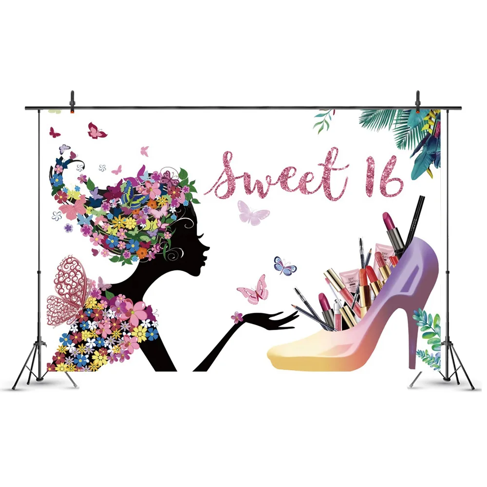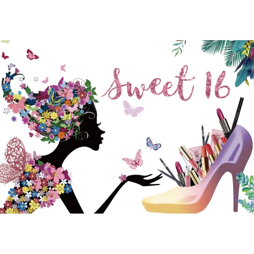 Милый 16 день Рождения Вечеринка Блестящий Фон Украшение 16th День Рождения Вечеринка Настенный декор событие фон баннер