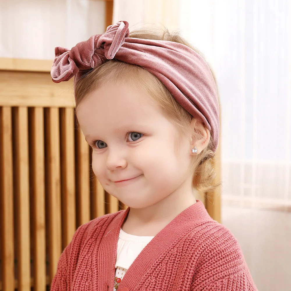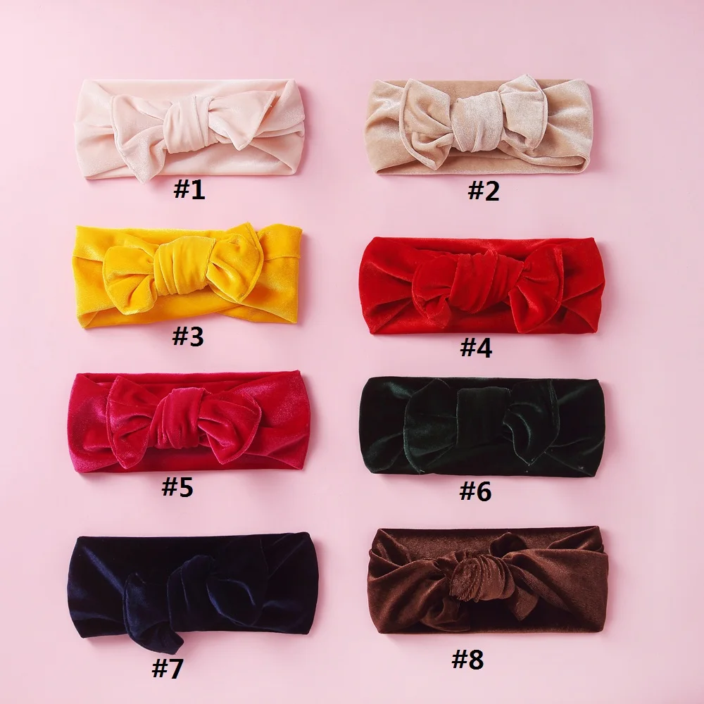 Повязка на голову бархатная для новорожденных девочек, повязка на голову с большим бантом, аксессуар для волос