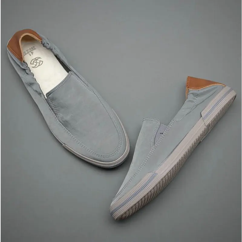 Мужские легкие вулканизированные туфли обувь; Мужские мокасины без шнуровки, удобные дышащие холщовые туфли, мужская обувь на плоской подошве