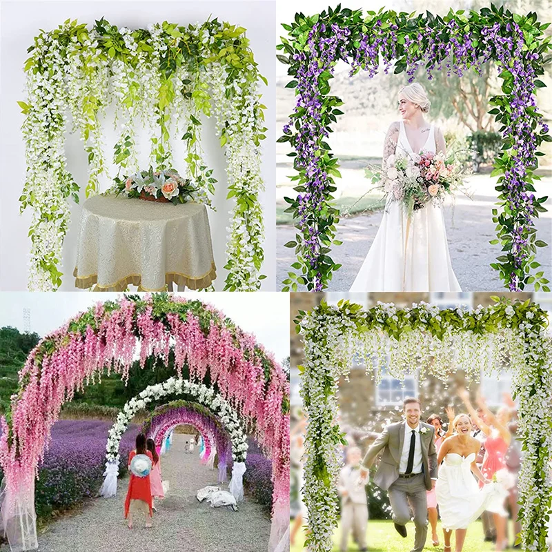 Свадебная гирлянда из искусственных растений, Листьев, ротанга, плюща, 1,8 м, Вистерия искусственная, украшение арки
