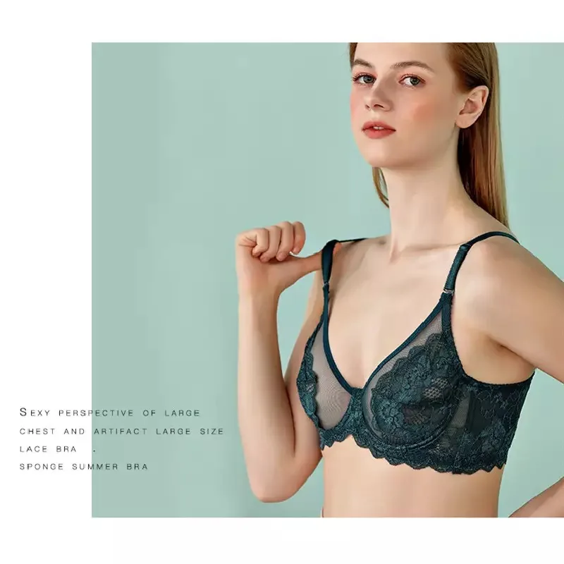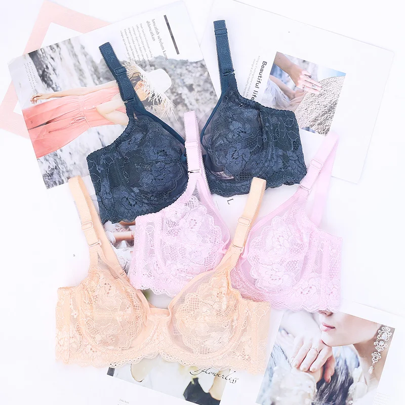Бюстгальтер кружевной Женский, ультратонкий, прозрачный, пуш-ап, размера плюс, 75-95