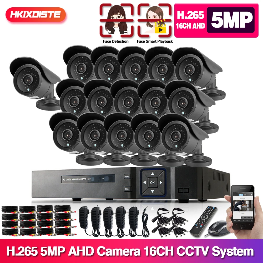HKIDISTE H.265 16CH 2MP 5MP AHD NVR CCTV система безопасности 16 шт. ИК наружная камера безопасности 5.0MP P2P комплект видеонаблюдения