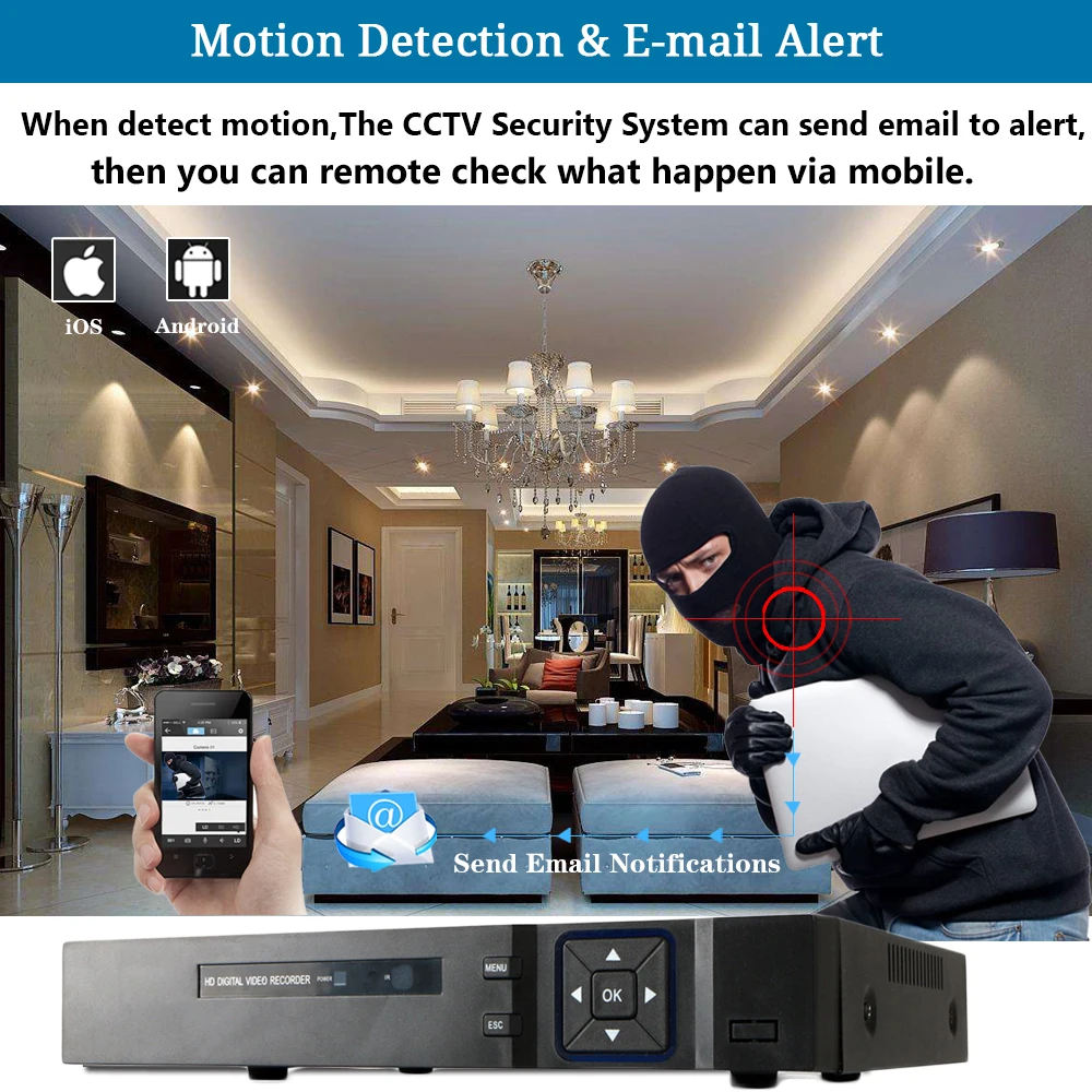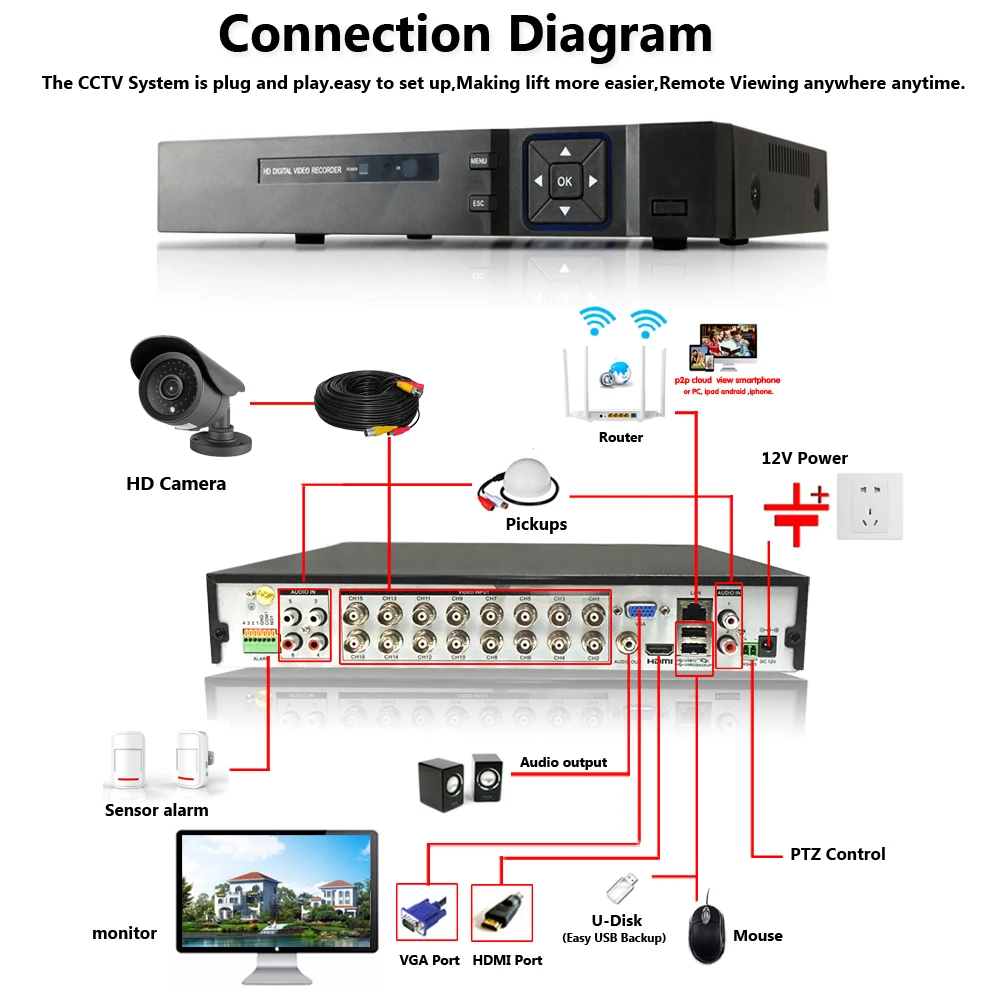 Простая настройка, всего 4 шага для просмотра на мобильный телефон,Просмотр видео в режиме реального времени в системе из любого места и в любое время с помощью смартфона, стола или ПК с передовой технологией P2P, вы можете получить удаленный доступ к вашей системе в течение нескольких минут или меньше, нет необходимости в переадресации, удаленный доступ никогда не был таким простым!