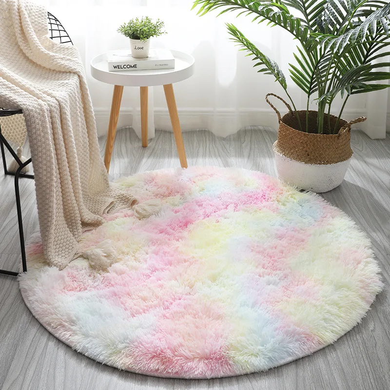 Красочный круглый лохматый ковер, мягкий плюшевый пушистый коврик, компьютерный стул, пестрый круглый ковер, милый детский коврик для комнаты, ковер