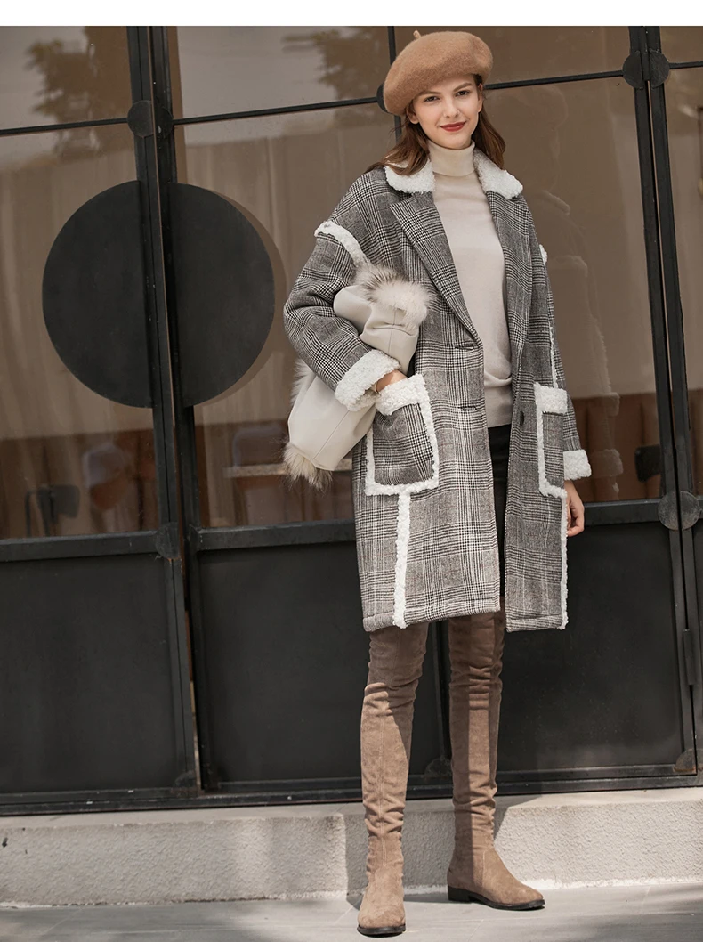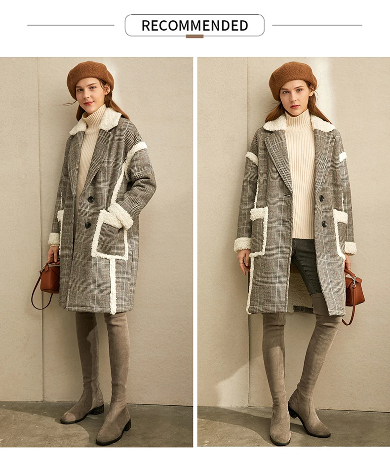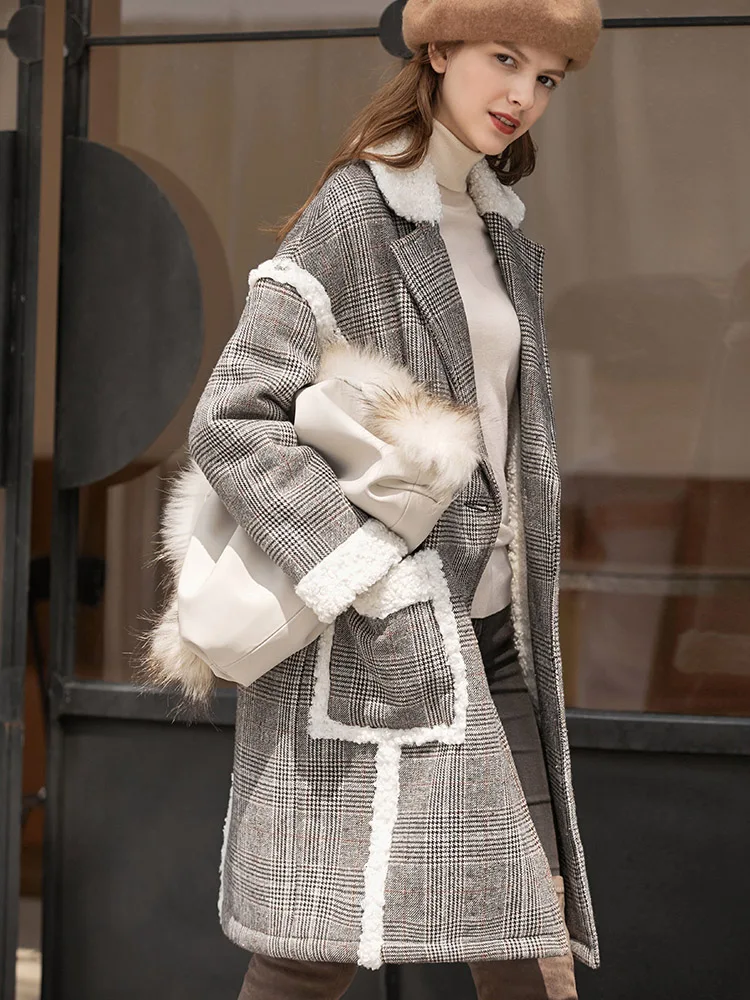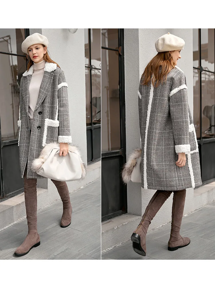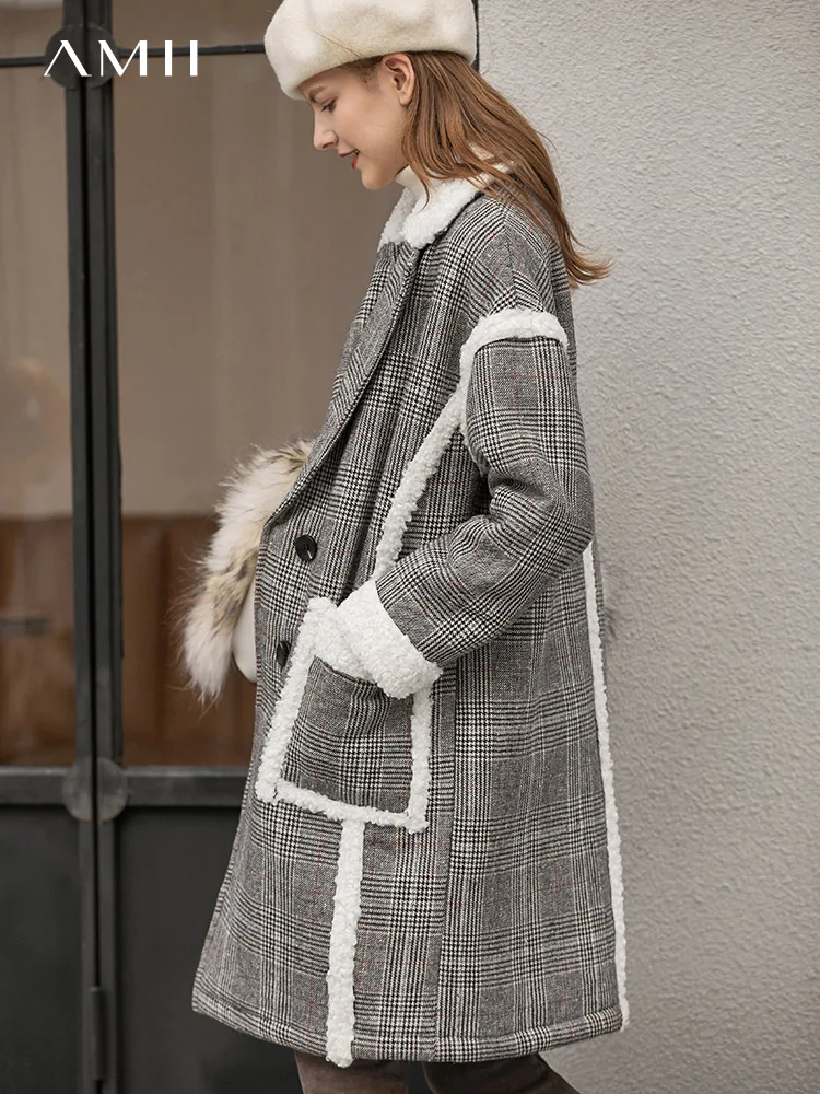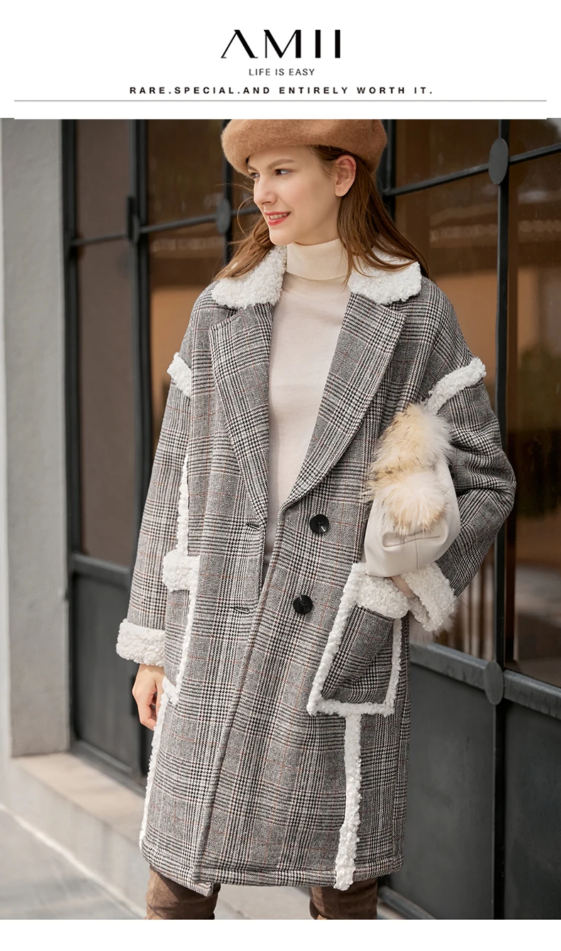Женское шерстяное пальто в клетку Amii, свободное зимнее пальто средней длины в стиле пэчворк, 11870396