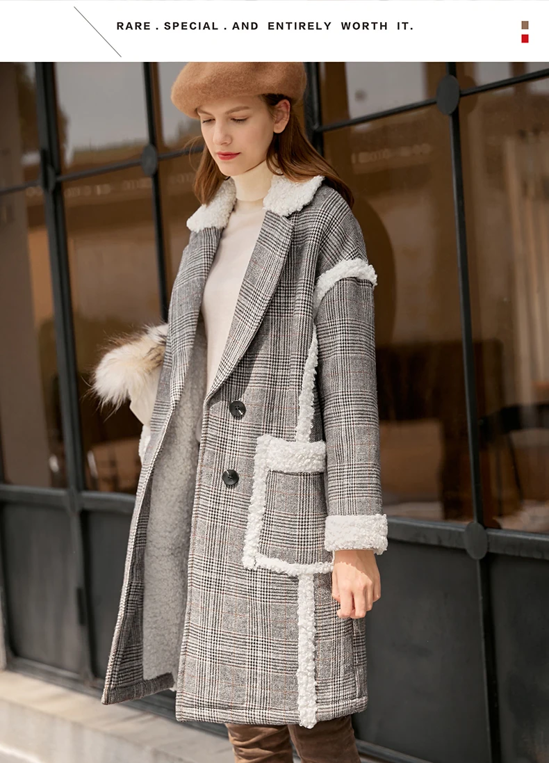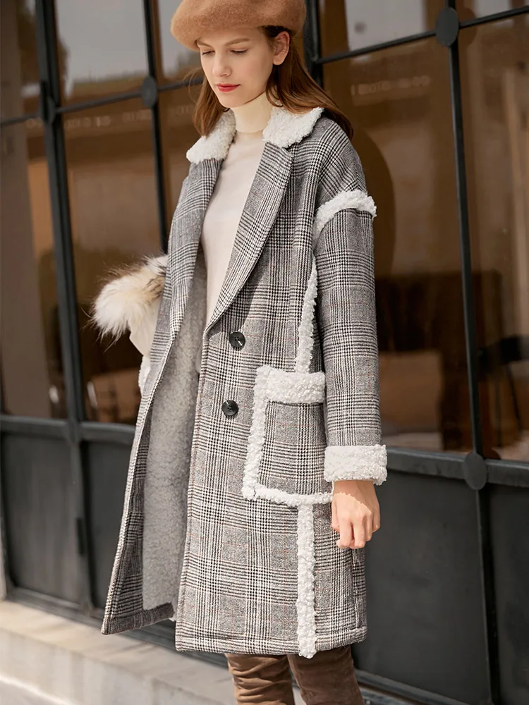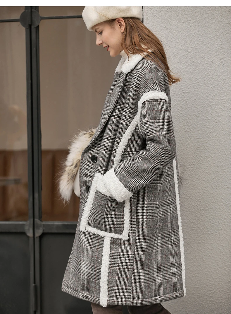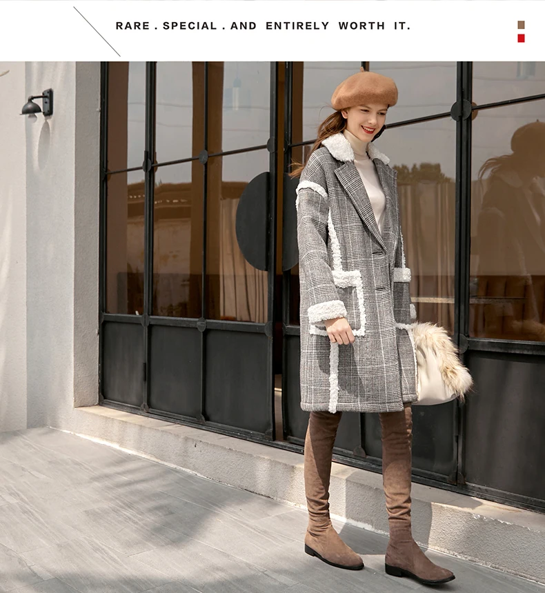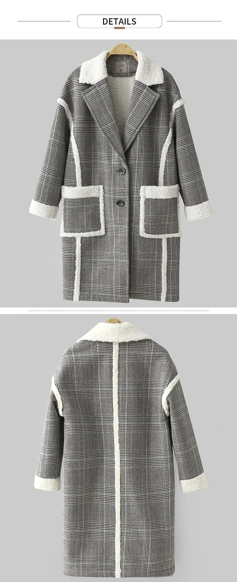 Женское шерстяное пальто в клетку Amii, свободное зимнее пальто средней длины в стиле пэчворк, 11870396