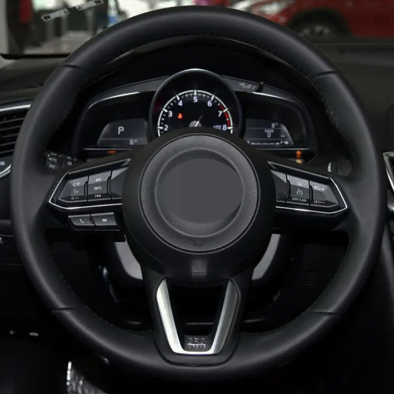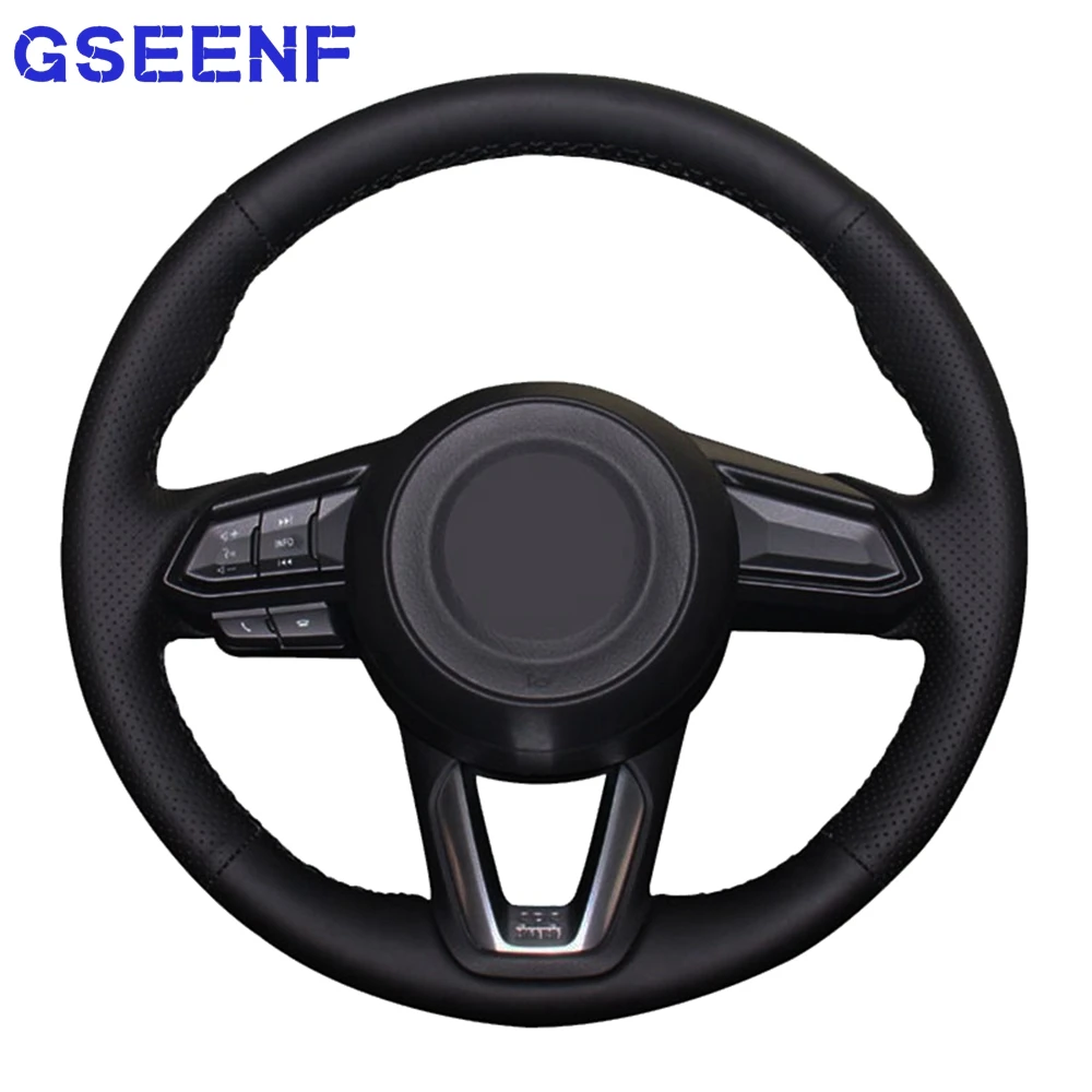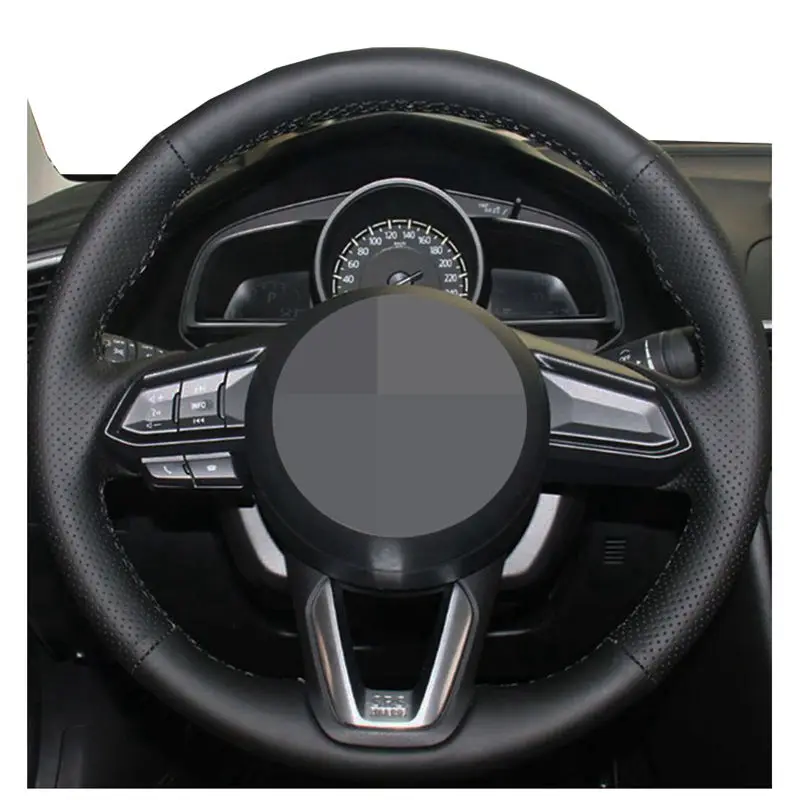Чехол рулевого колеса автомобиля для Mazda 3 Axela 2018-2017 Mazda 6 Atenza CX-3 CX-5 CX-9 черная сшитая вручную искусственная кожа