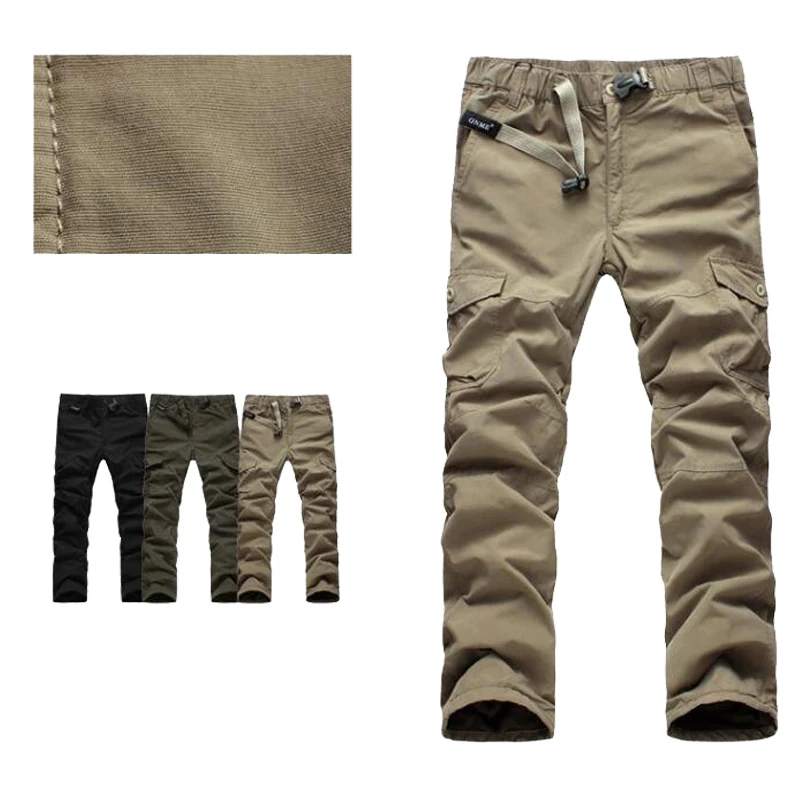 Мужские зимние Утепленные флисовые брюки-карго, рабочие брюки с несколькими карманами, мужские повседневные хлопковые длинные брюки, военные тактические брюки