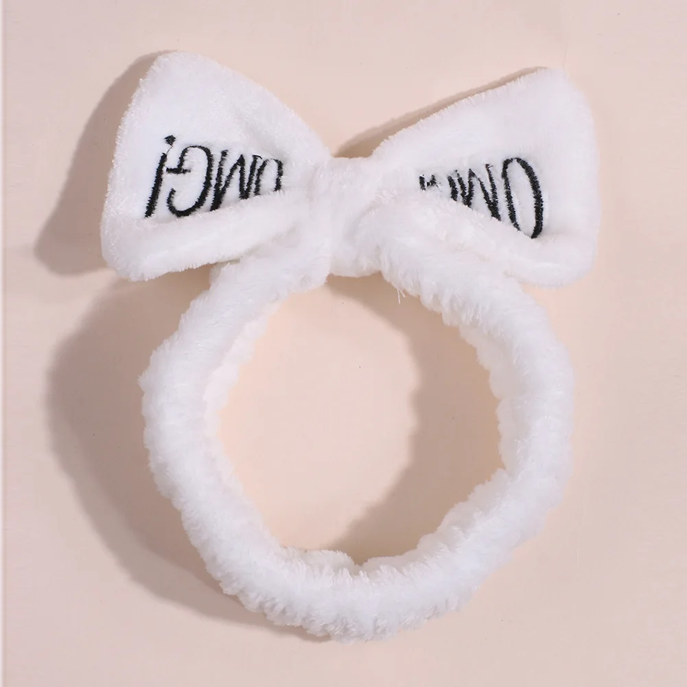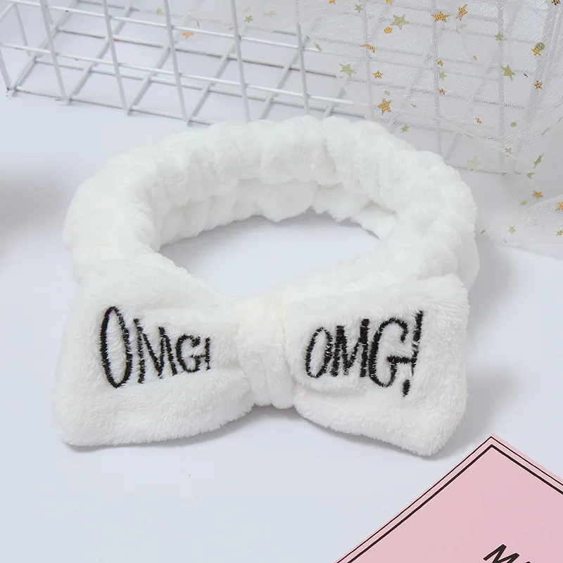 Повязка на голову для женщин из кораллового флиса OMG с надписью ободок с бантиком, аксессуары для мытья лица, тюрбан для волос для девочек