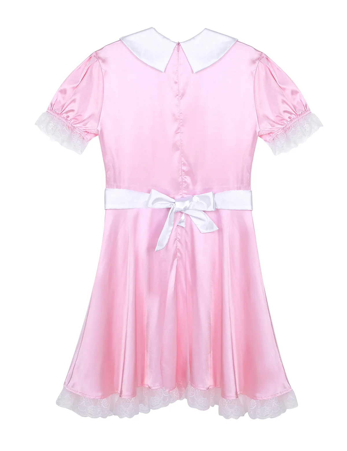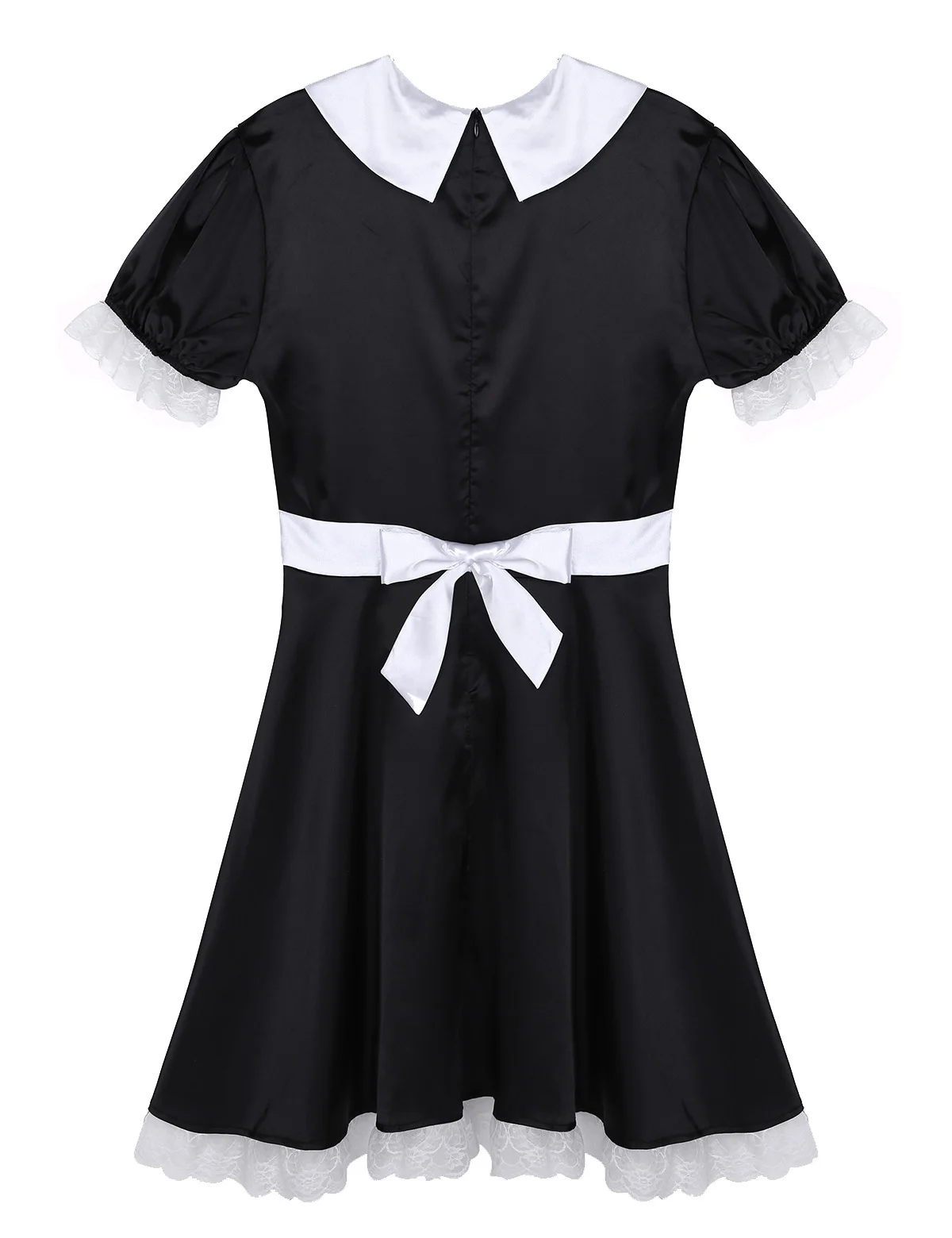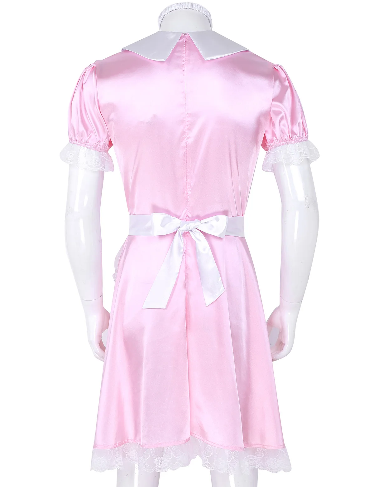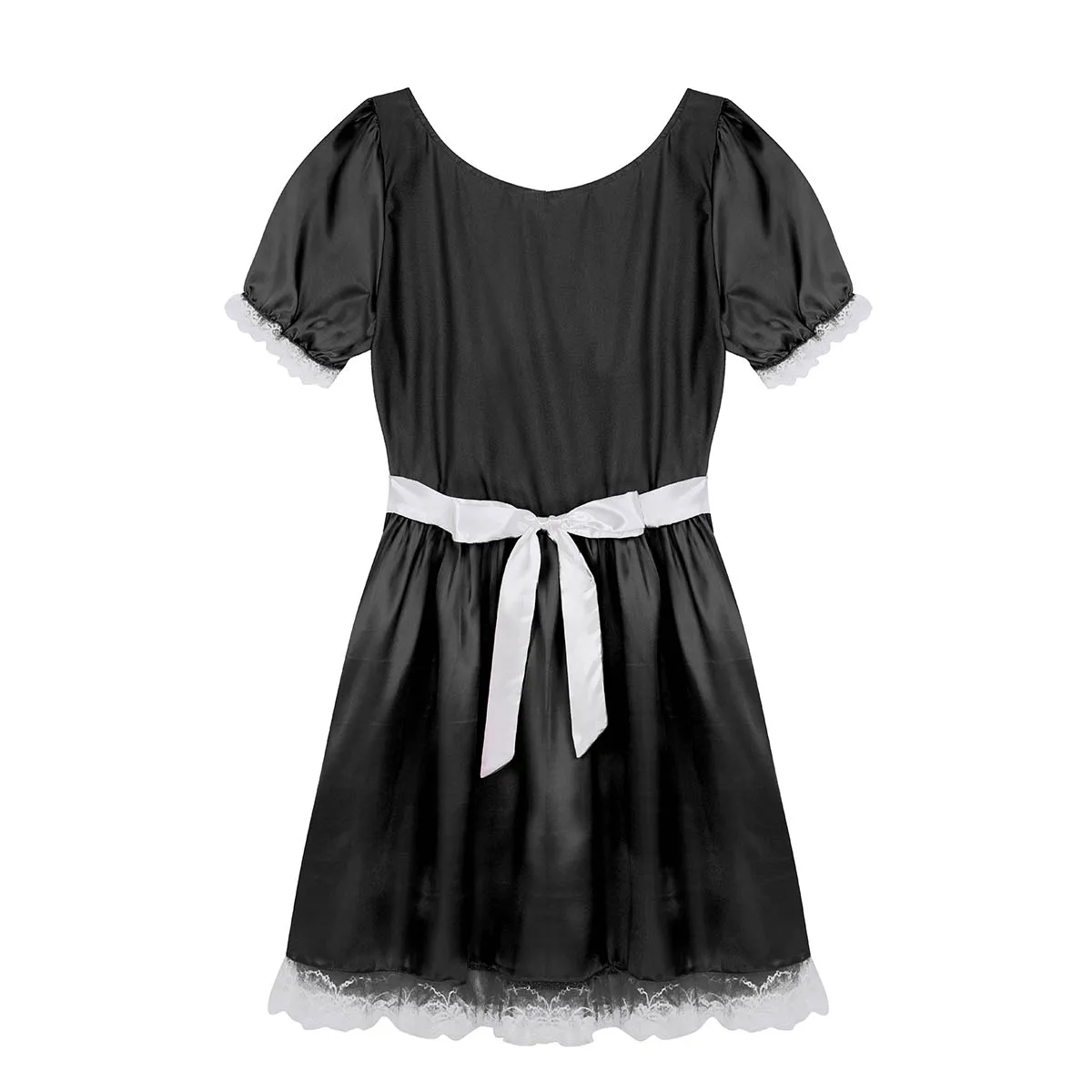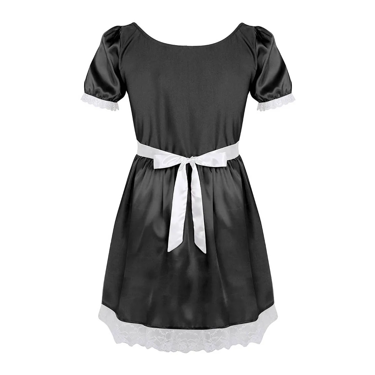 Костюм горничной из 3 предметов для женщин, атласное платье с повязкой на голову и фартуком, с коротким рукавом и кукольным воротником, для ролевых игр
