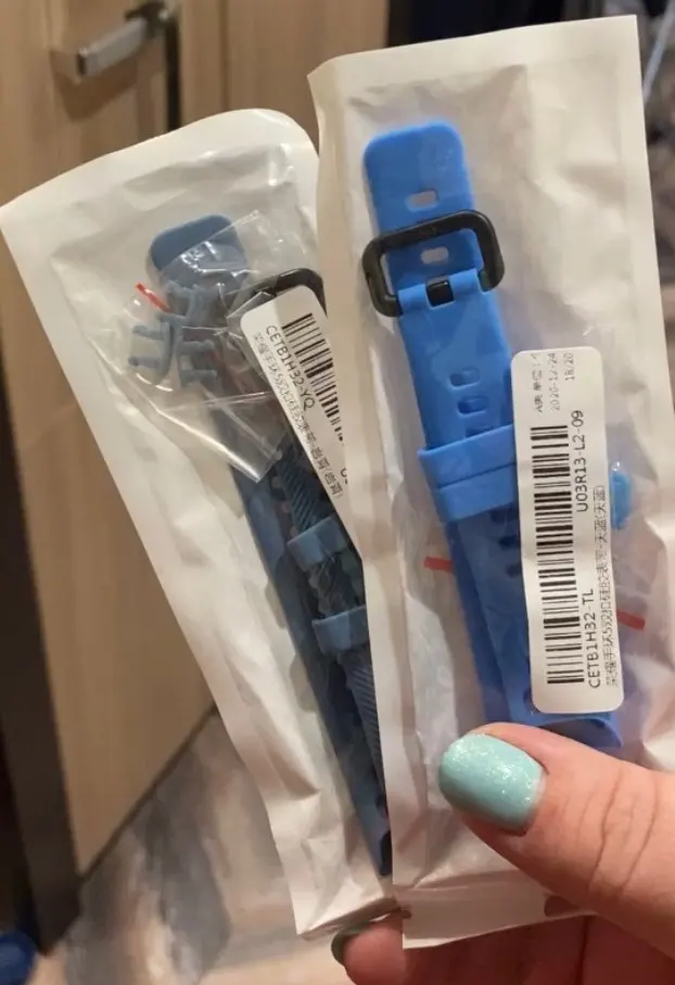 Покупала 2 ремешка сразу, белый и розовый, в пакетике застежки для каждого,доставка быстрая 2 недели, товар хороший,ставлю 4,цвет розового ремешка отличается от представленного на картинке, у продавца он более бледный, в действительности он ярко розовый. Брала розовый с учетом на то, что он будет бледным, но увы.