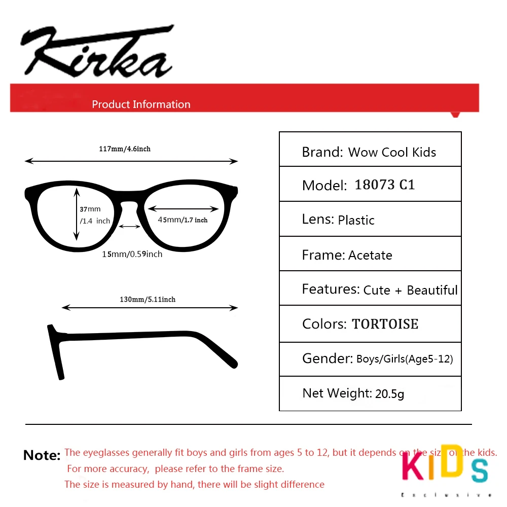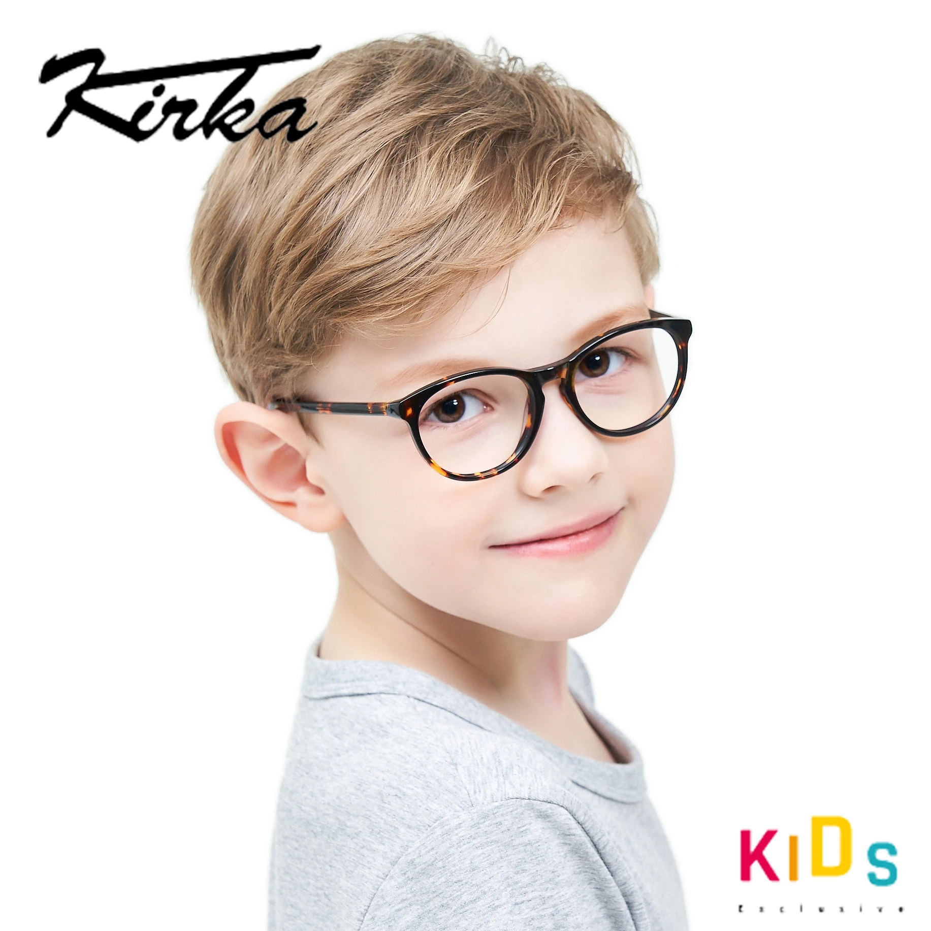 Оправа для очков Kirka детская, в стиле ретро, для близорукости, черная ацетатная оправа, прозрачные линзы, оправа для детских очков