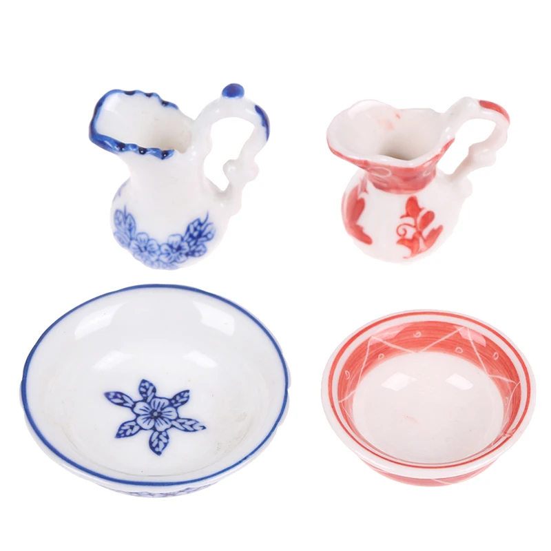 Миниатюрный фарфоровый чайник для кукольного домика, 2 шт.компл. 1:12, чаша для фруктов