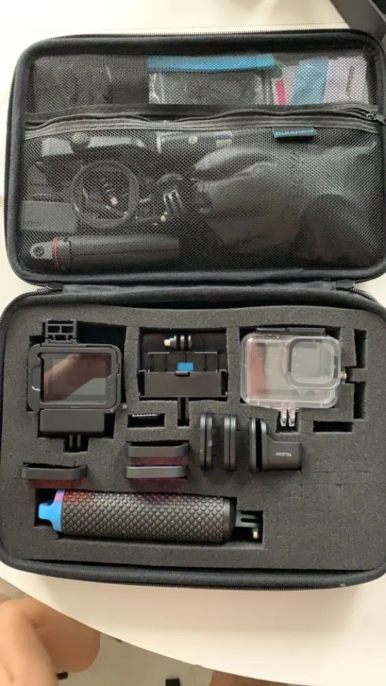 Как на фотографиях, neaf and ridgit casus удерживает мою экшн-камеру TomTom Bandit, включая селфи-палку (длиной 26 см) и другие аксессуары. Interiour может быть адаптирован для организации оборудования к вашей связи. В крышке есть место на молнии для хранения кабелей и других мелких предметов.