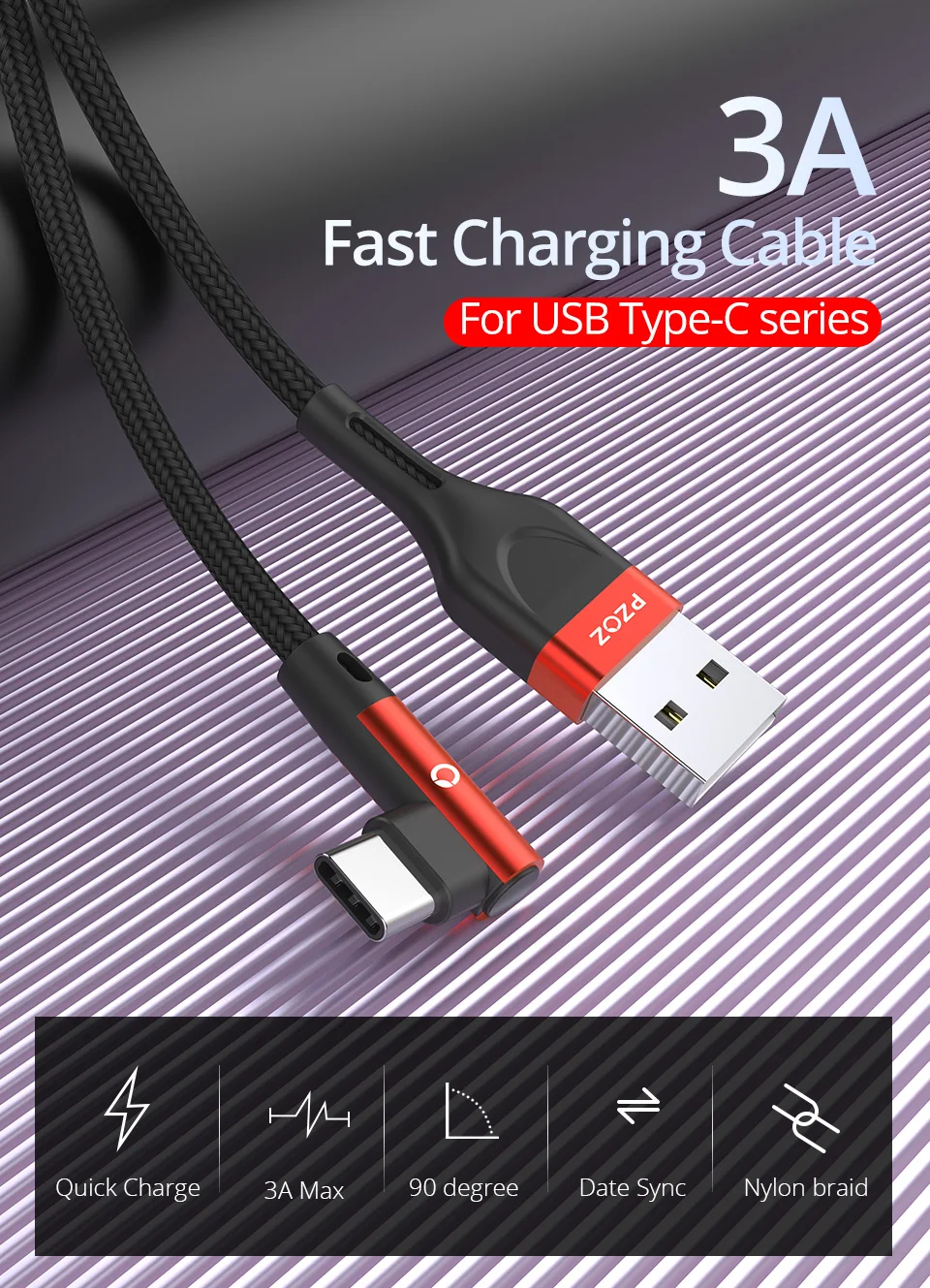 Кабель PZOZ 90 градусов usb Type c Micro usb Type C Быстрая зарядка Microusb Type-C зарядное устройство для xiaomi redmi note 9s 8 pro usb-c data