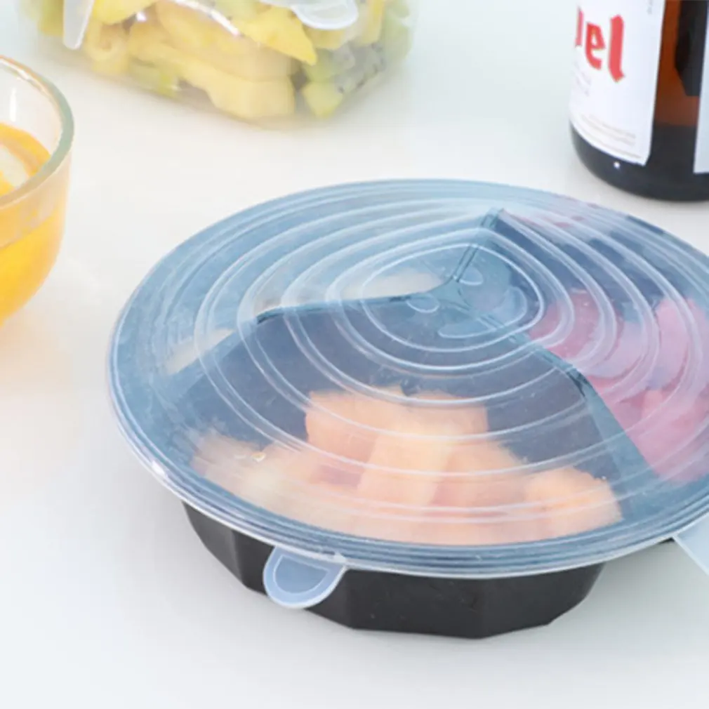 Универсальная Силиконовая крышка, растягивающаяся Крышка для кастрюли, сковороды, продуктов питания, 6 шт., чехол для микроволновой печи