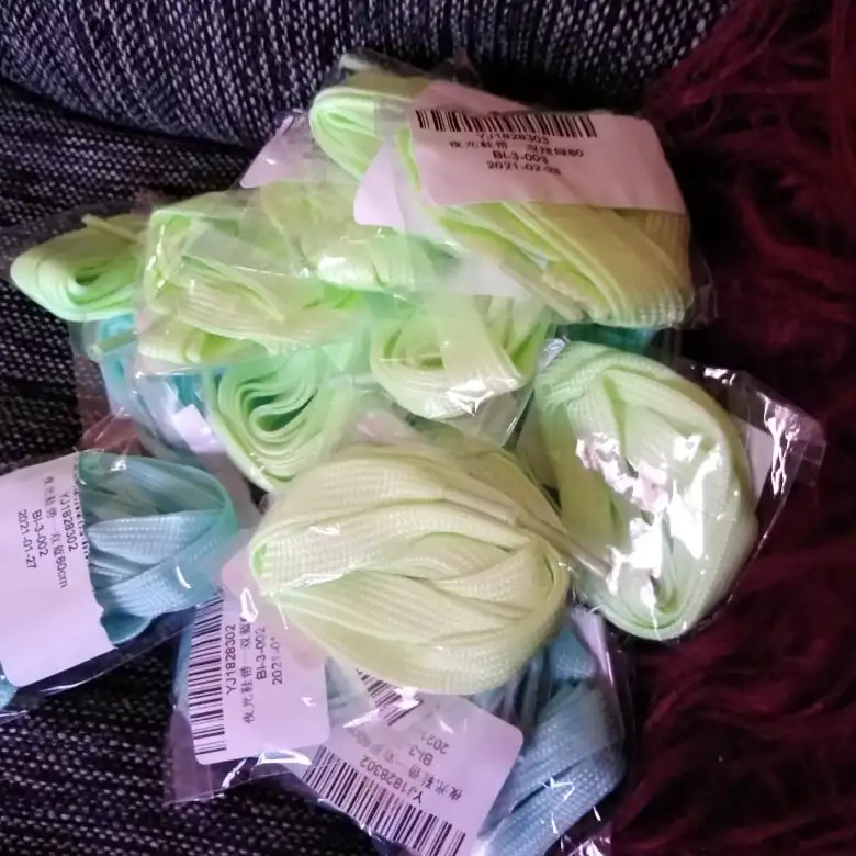ждала заказ уже месяц как. Шнурки были красивыми, но они не светятся. поэтому они мне нахрен не нужны
