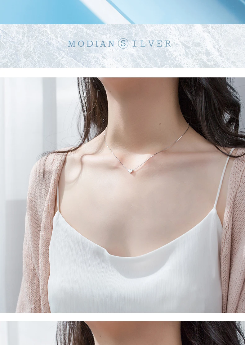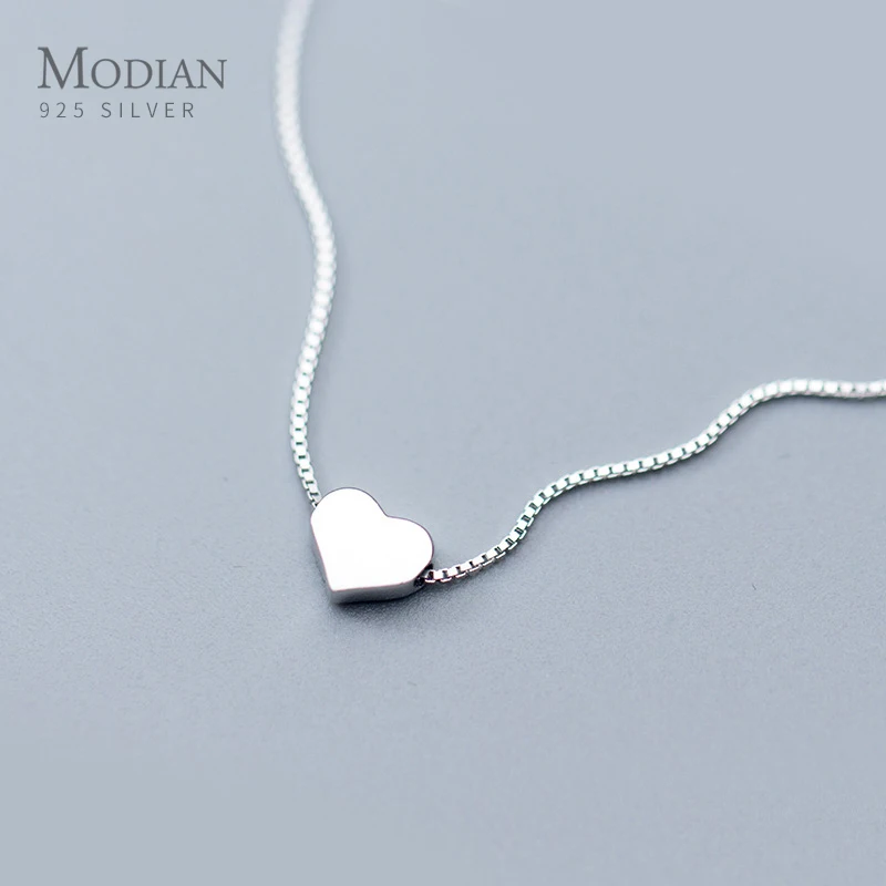 Женское Ожерелье Modian из стерлингового серебра 925 пробы с подвеской в виде сердца, модная цепочка в коробке, Изящные Ювелирные украшения, аксессуары