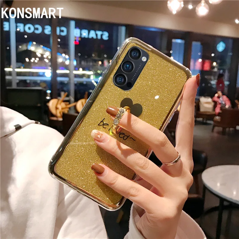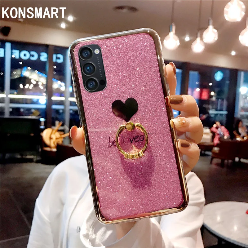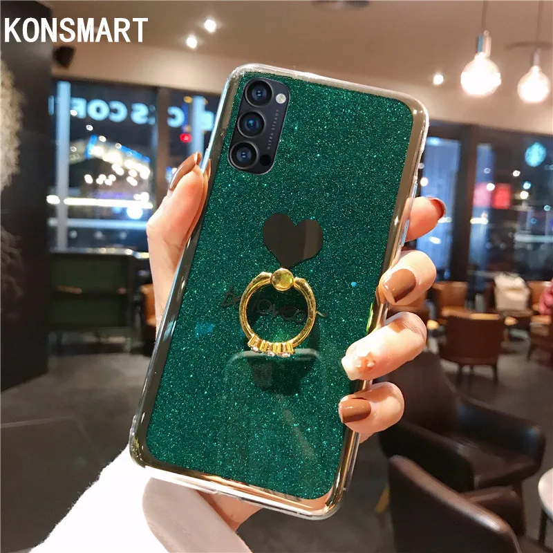 KONSMART OPPO Reno 4 Pro 5G чехол для OPPO Reno4, Модный милый блестящий чехол для телефона с кольцом на палец, 4 5G, силиконовый мягкий чехол