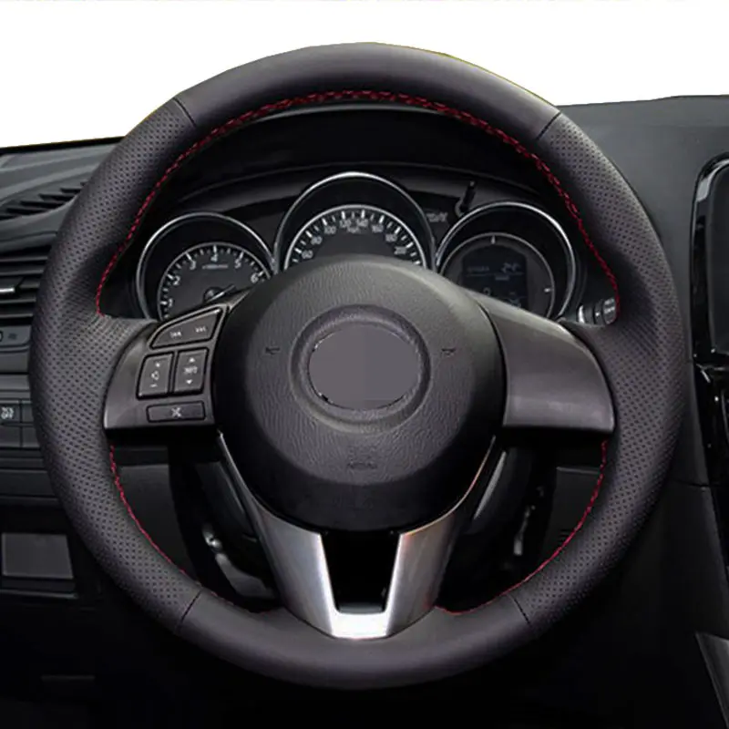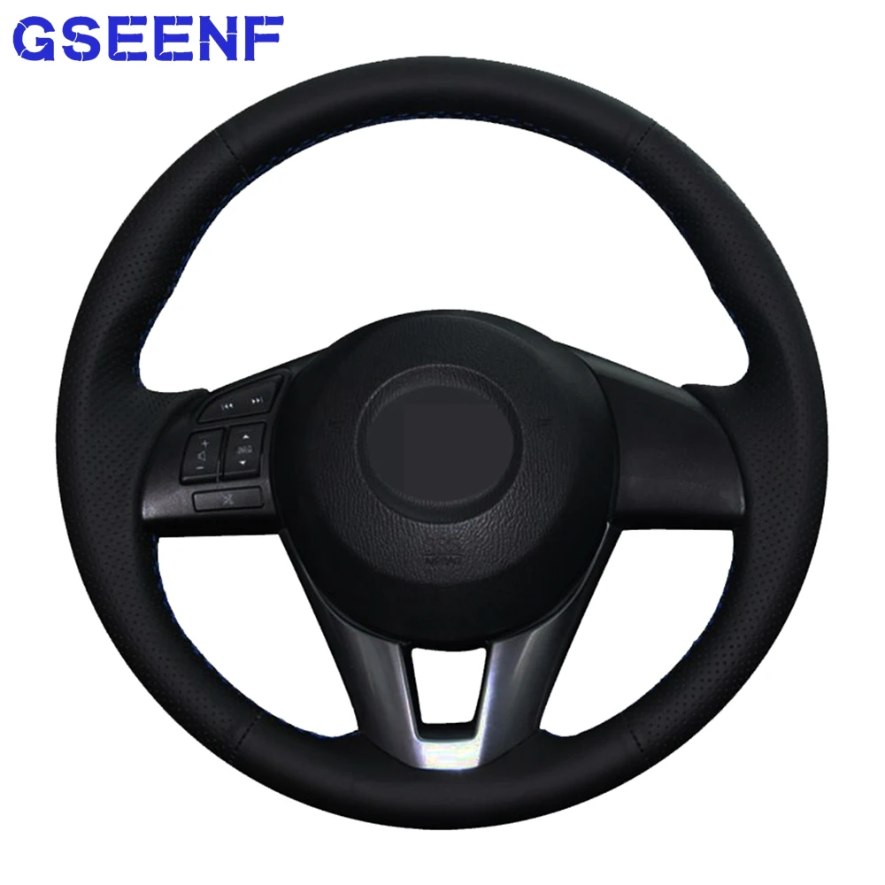 Чехол рулевого колеса автомобиля для Mazda, чехол рулевого колеса автомобиля для Mazda, CX5, Atenza, 2014, новый, Mazda 3, CX-5, 2016, черный, прошитый вручную, искусственная кожа