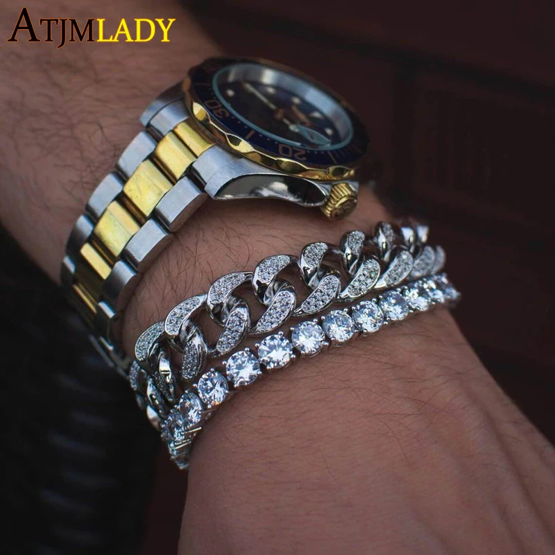 Сверкающий Браслет из кубинской цепи с фианитом, 5 А