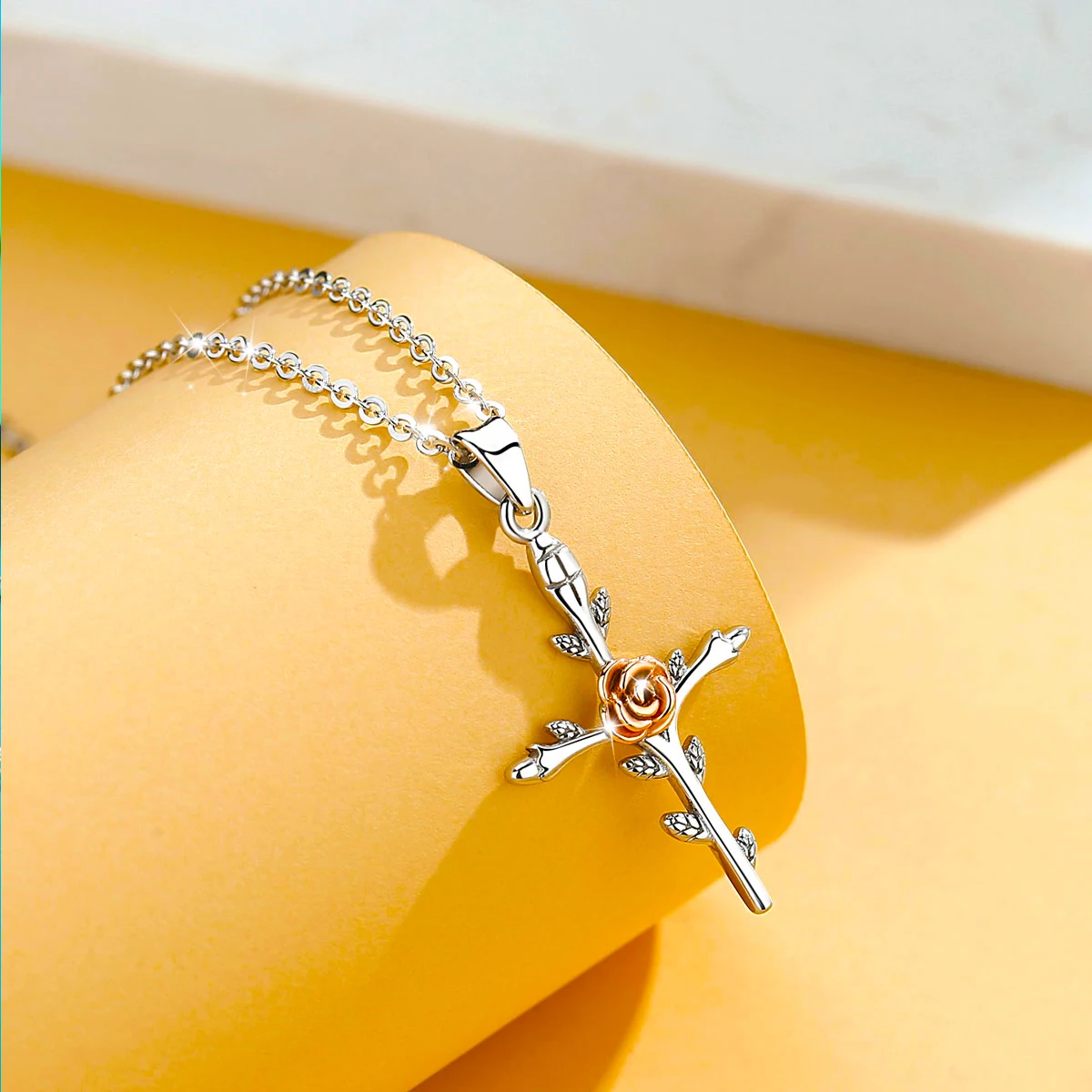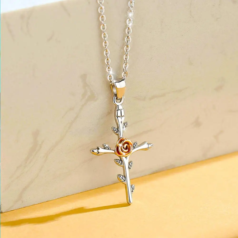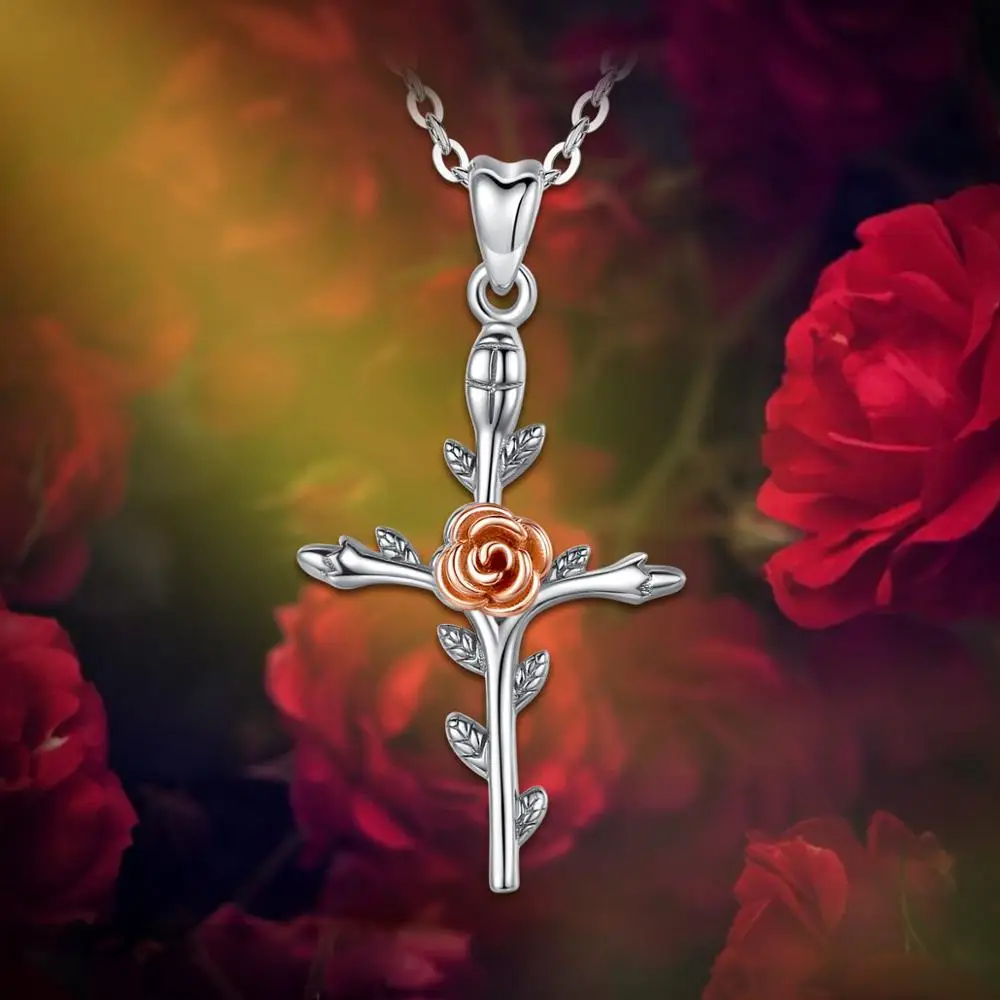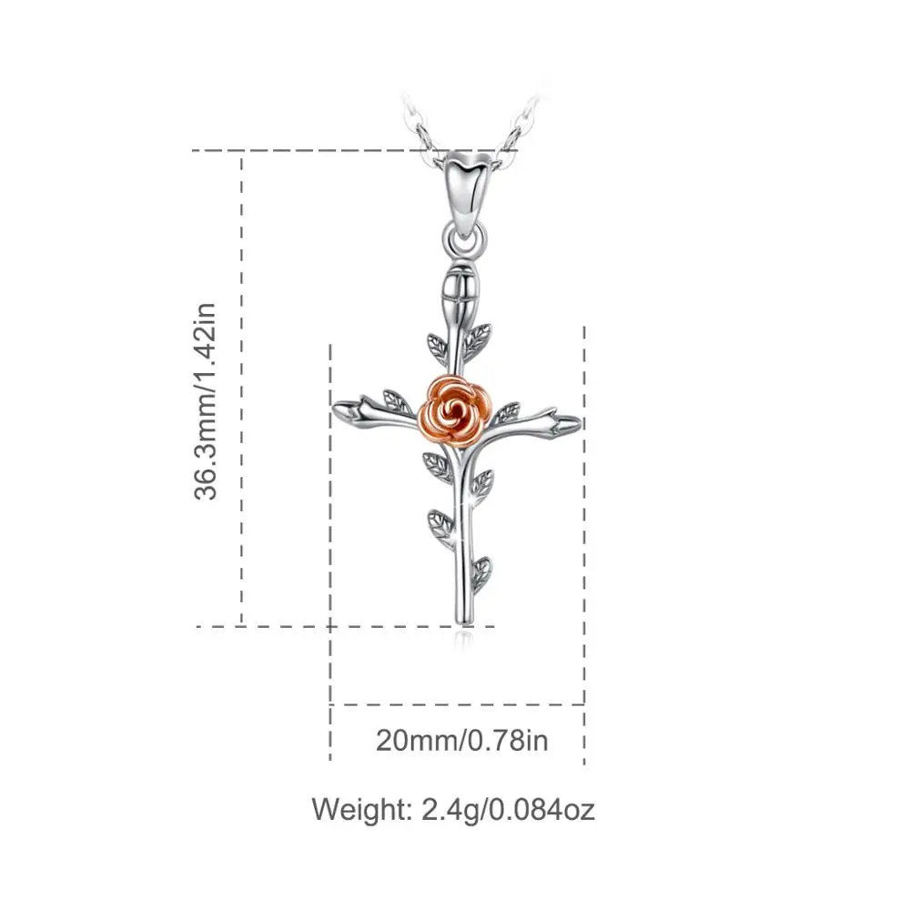 Eudora, Настоящее серебро 925 пробы, розовый золотой крест с цветами розы, кулон, ожерелья, ювелирные украшения для женщин, вечерние, романтический подарок D174