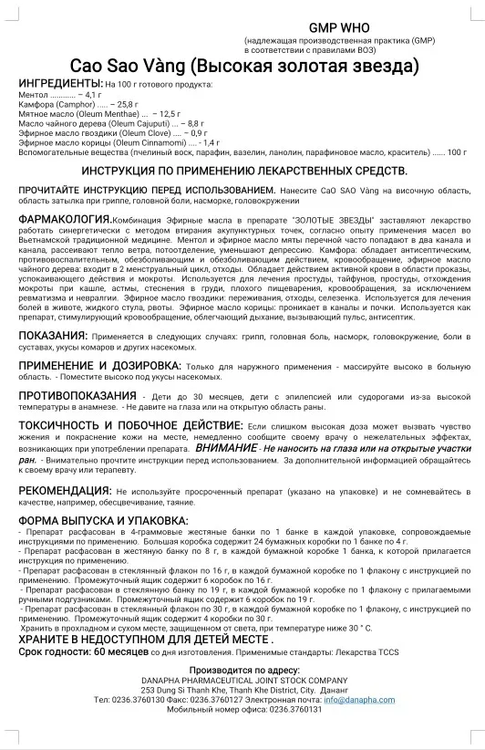 Мазь охлаждающая вьетнамская Золотая башня, 100%, 146 шт.