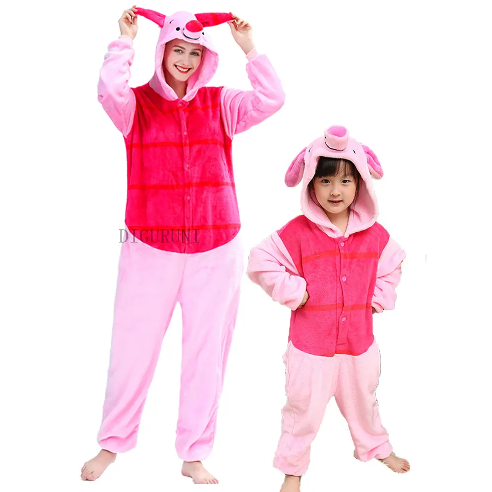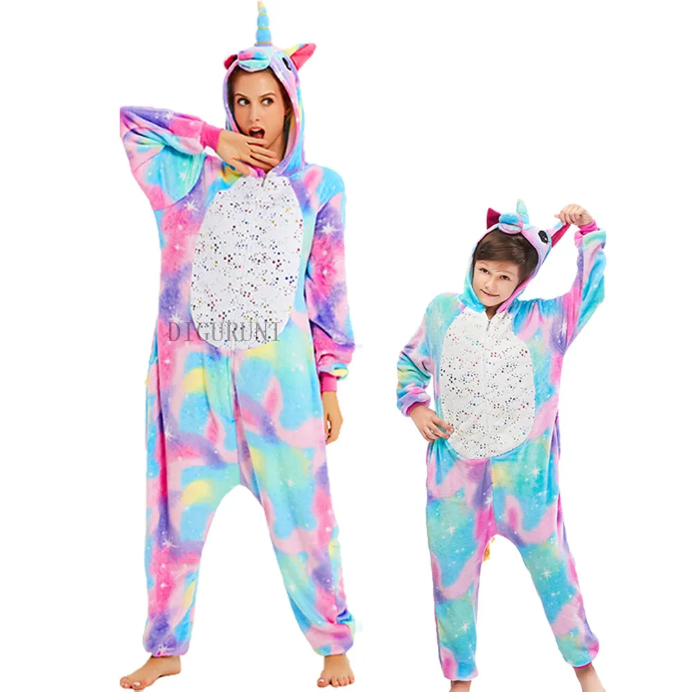 Пижама Все в одном для взрослых, зимняя Пижама розового цвета, комбинезон с мультяшным единорогом, пижама с капюшоном, одежда для сна для женщин и мужчин, пижама с животными