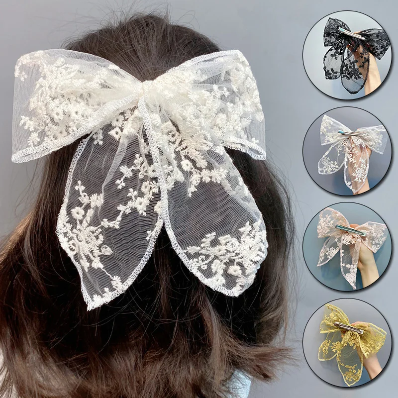 Заколки для волос с бантом женские, милые заколки с кружевным цветк...