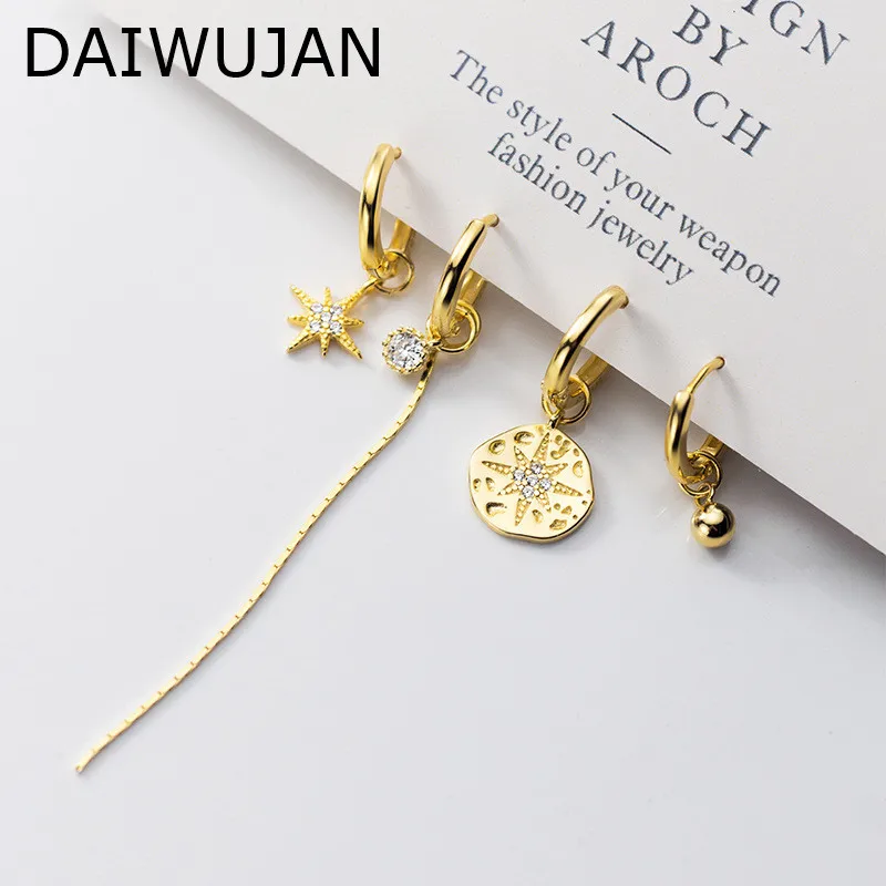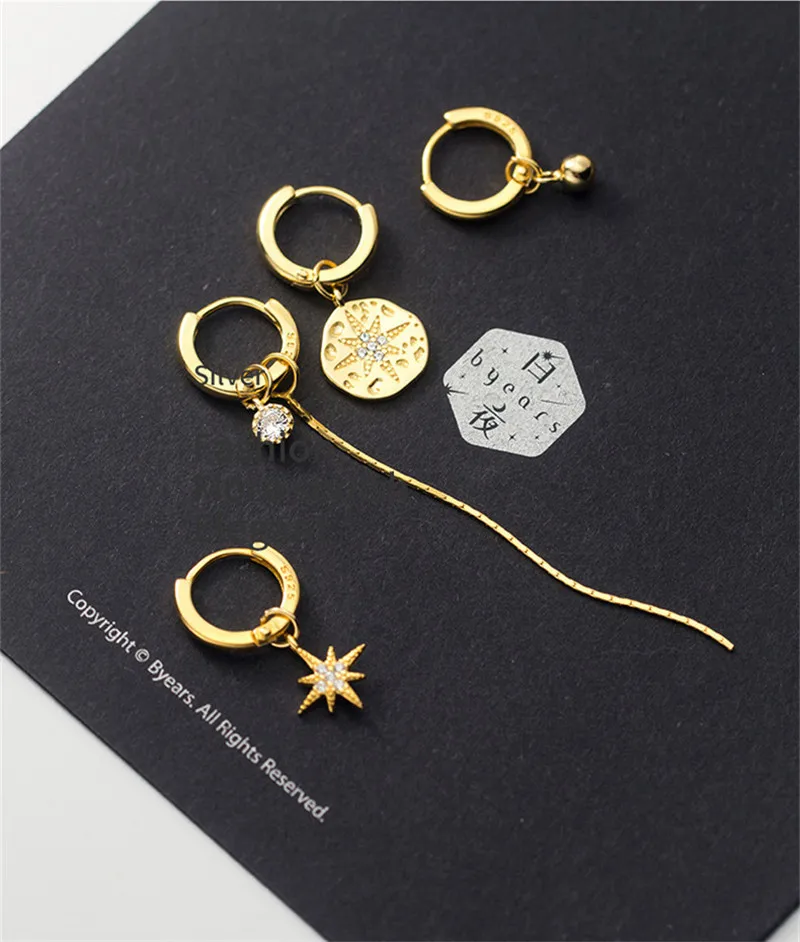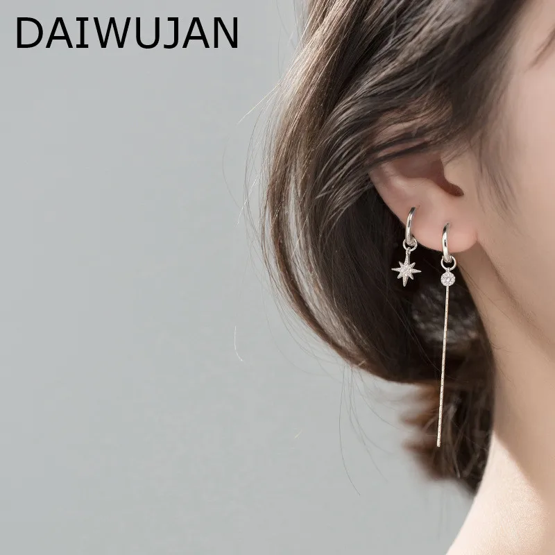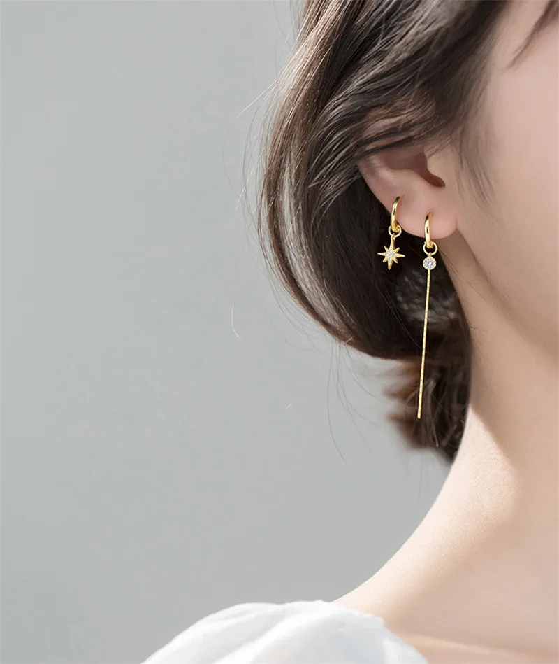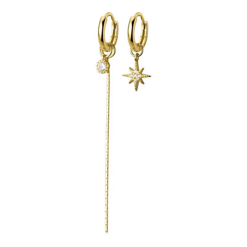 Асимметричные серьги из серебра 925 пробы с блестящей звездой, серь...