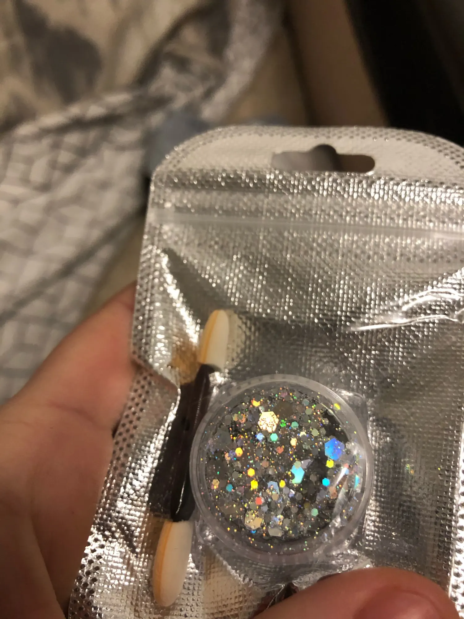 Все пришло в целости и сохранности!) Блестки выглядят даже лучше, чем я представляла. Не пробовала ещё делать макияж, но думаю будет выглядишь очень даже круто. Огромное Спасибо! Буду заказывать ещё!)