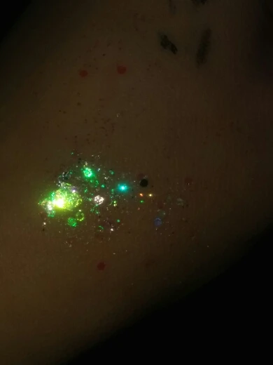 Невероятно яркий и красивый глиттер! Переливается от розового через зеленый в синий! Не передать как красиво! На свотче легчайшее прикосновение пальцем к глиттеру! Ярко уже с первого слоя, и можно наслаивать не смазывая при этом предыдущий слой! Застывает достаточно быстро, не осыпается, переносится легко, смывается водой без проблем. В общем один восторг получить шикарные блестки доверху налитые в упаковку за такие смешные деньги! Продавец положил спонжик в подарок, сами блестки были в доп.пакетике. С продавцом не общалась- доставка ровно месяц.