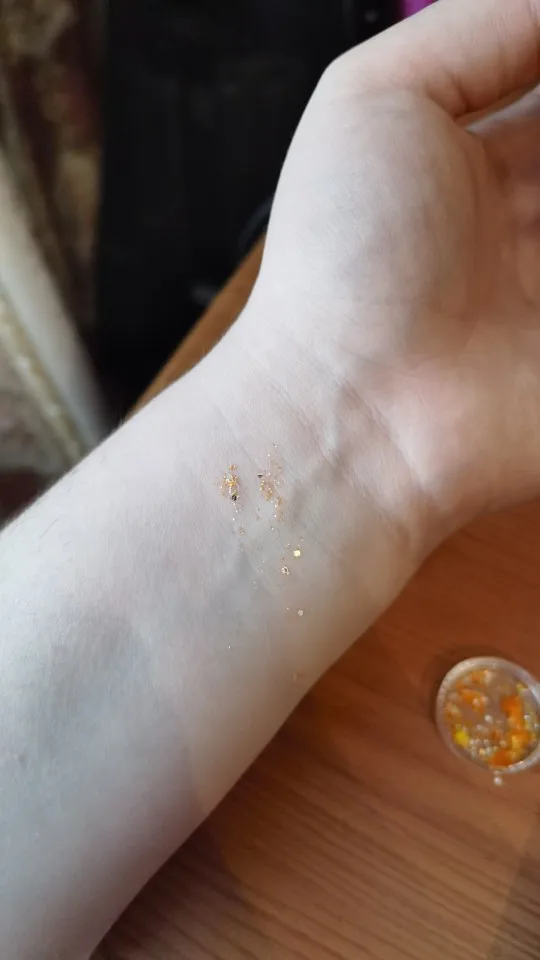 Товар шёл долго, думала не дойдёт, но в итоге приехали до меня, текстура хорошая , маслянистая , не липкая и комфортная, сами блестки очень даже приличные для такой цены, поэтому рекомендую