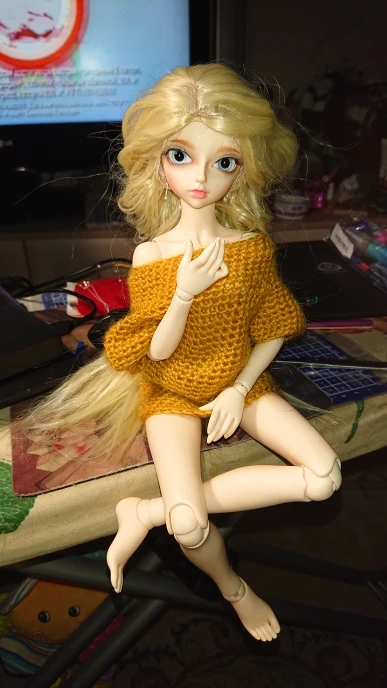 Это не та кукла, что я заказывала. За это, я и сняла звезду. Одна нога плохо натянута, немного болтается. Вторая натянута так, что когда я по не знанию, сняла ступню, и резинка у меня улетела началу ноги, я пол часа корячилась, чтобы натянуть её на место. Вторую ногу я не стала пока рисковать и менять. Может быть когда нибудь после. А так кукла симпотичная. Вполне устраивает.На последнем фото, какую ждала