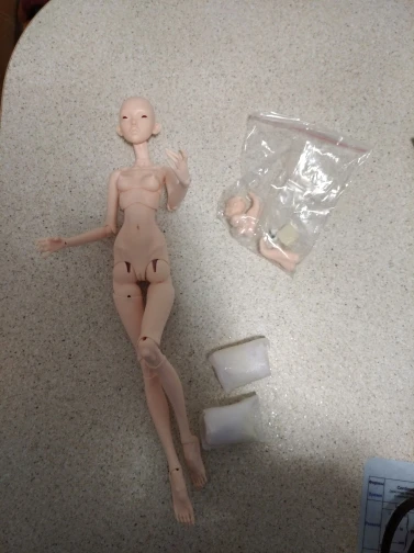 Кукла пришла быстро. Упакована максимально плотно. В комплекте идет губка для очистки от грязи, комплект кистей рук и ступней ног, глаза и ресницы. Качество отличное