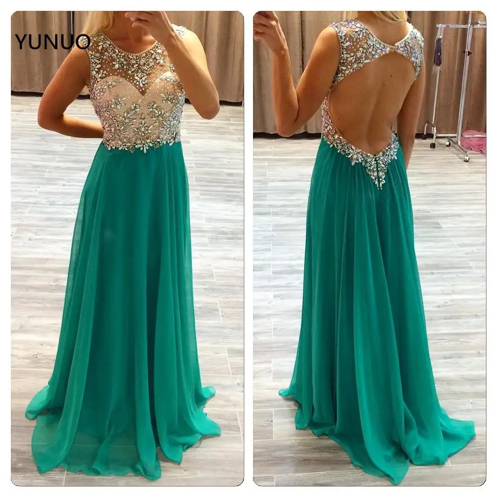 Женское шифоновое вечернее платье YUNUO, с открытой спиной Вечерние кристаллами, платье для выпускного вечера со шлейфом, бальное платье