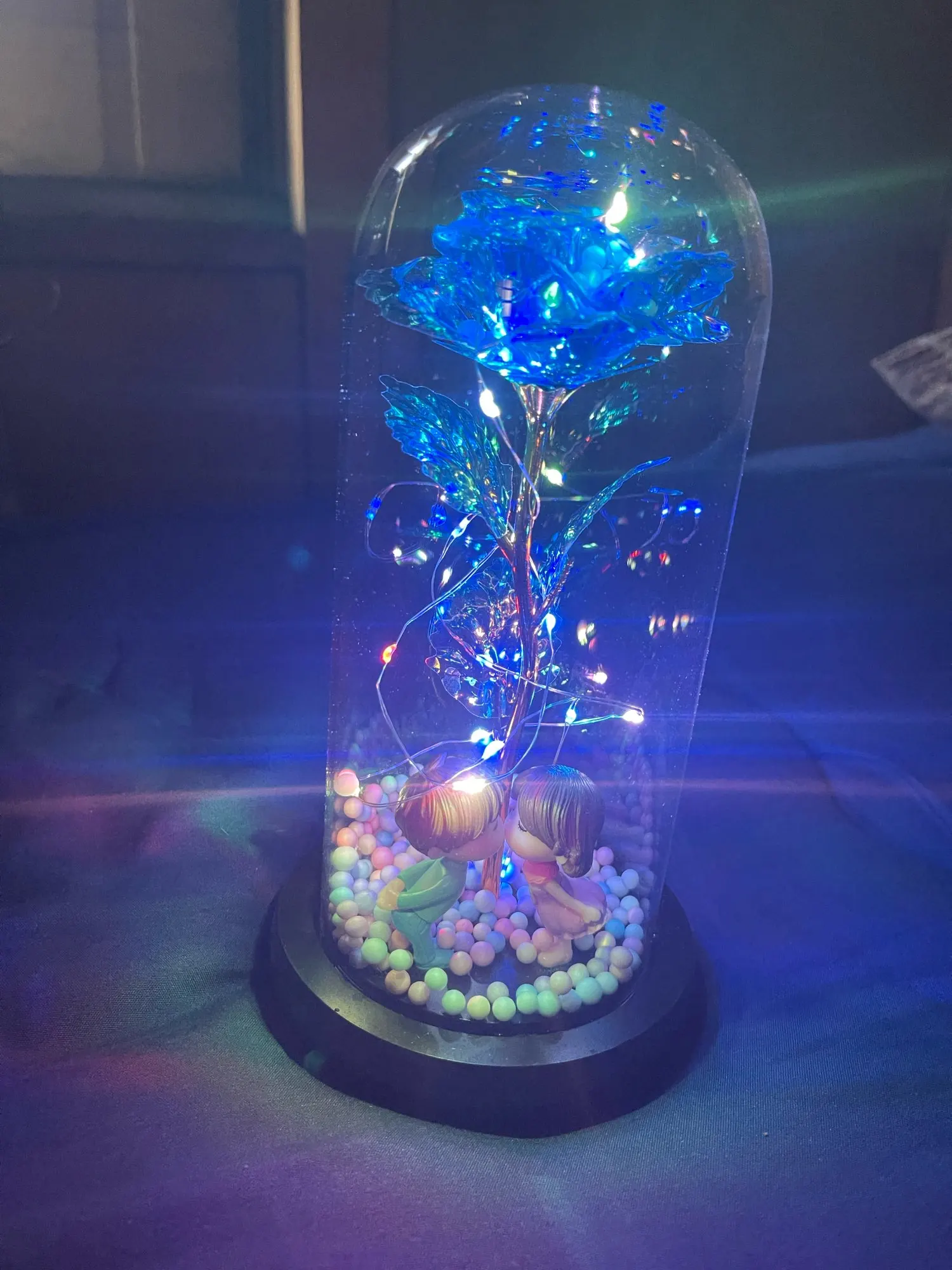 Новинка, яркий светодиодный ночник с черной основой, Роза в колбе, цветок в стеклянном куполе, подарок на день Святого Валентина, свадебное украшение