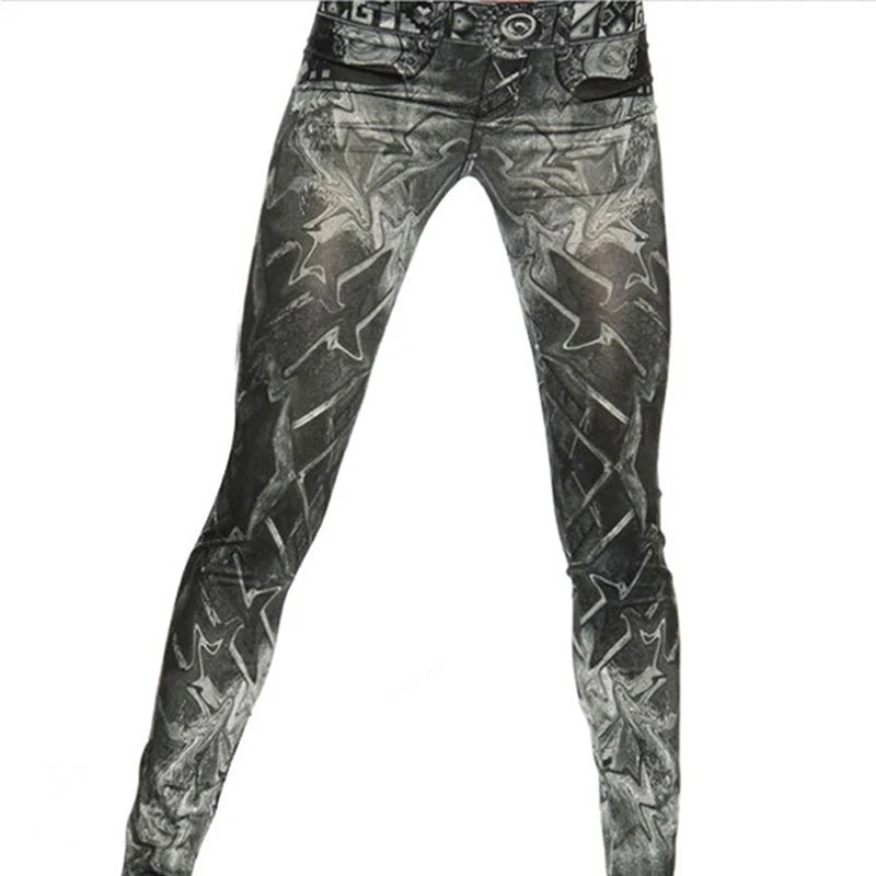 Женские джинсовые леггинсы, новинка, Лидер продаж, облегающие джинсы с имитацией имитации, леггинсы для фитнеса, девять брюк, черные леггинсы с татуировкой